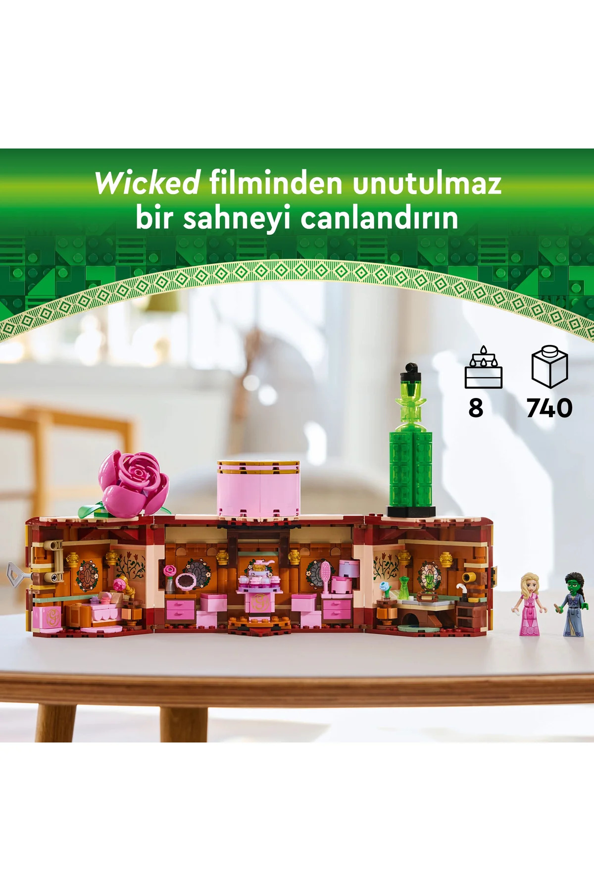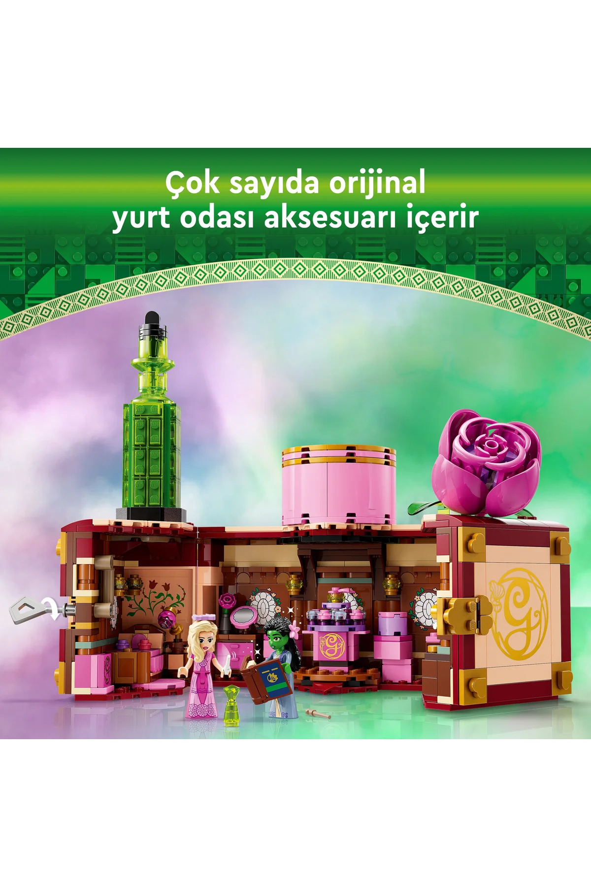با باز کردن این چمدان قابل ساخت، دنیای جادویی فیلم Wicked را آزاد کنید. لحظهای جادویی از دوستی را کشف کنید، زمانی که گلیندا قول میدهد الفابا را “محبوب” کند. کد QR مخفی مجموعه را اسکن کنید تا به محتوای اختصاصی LEGO® Wicked و آهنگ تم محبوب فیلم دسترسی پیدا کنید – فقط قبل از دسترسی به اینترنت حتماً از یک بزرگسال اجازه بگیرید! درست مانند فیلم، عروسکهای کوچک را در اتاق خوابگاهشان با موسیقی برقصانید.