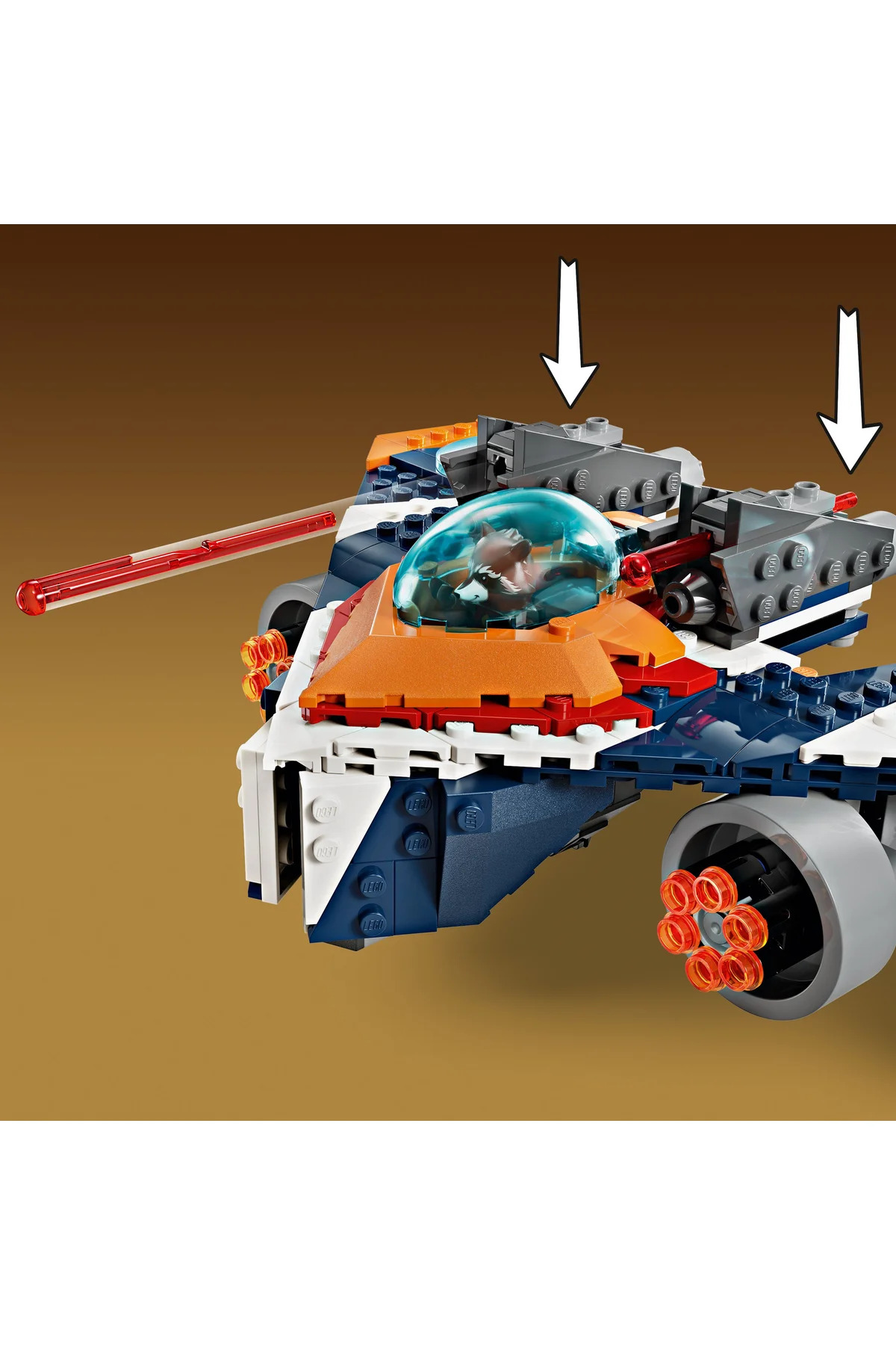 به راکت در سفینه فضایی Warbird بپیوندید و به نبرد زاندار پرواز کنید! وقتی رونانِ متهمکننده با چکش قدرتمند کازمی-راد خود به Warbird حمله میکند، جنگجوی Kree را با ۲ موشکانداز فنری و ۲ تیرانداز مگا ۶-گلولهای منفجر کنید، سپس برای ماجراجویی بعدی خود با نگهبانان کهکشان، به فضا برگردید.