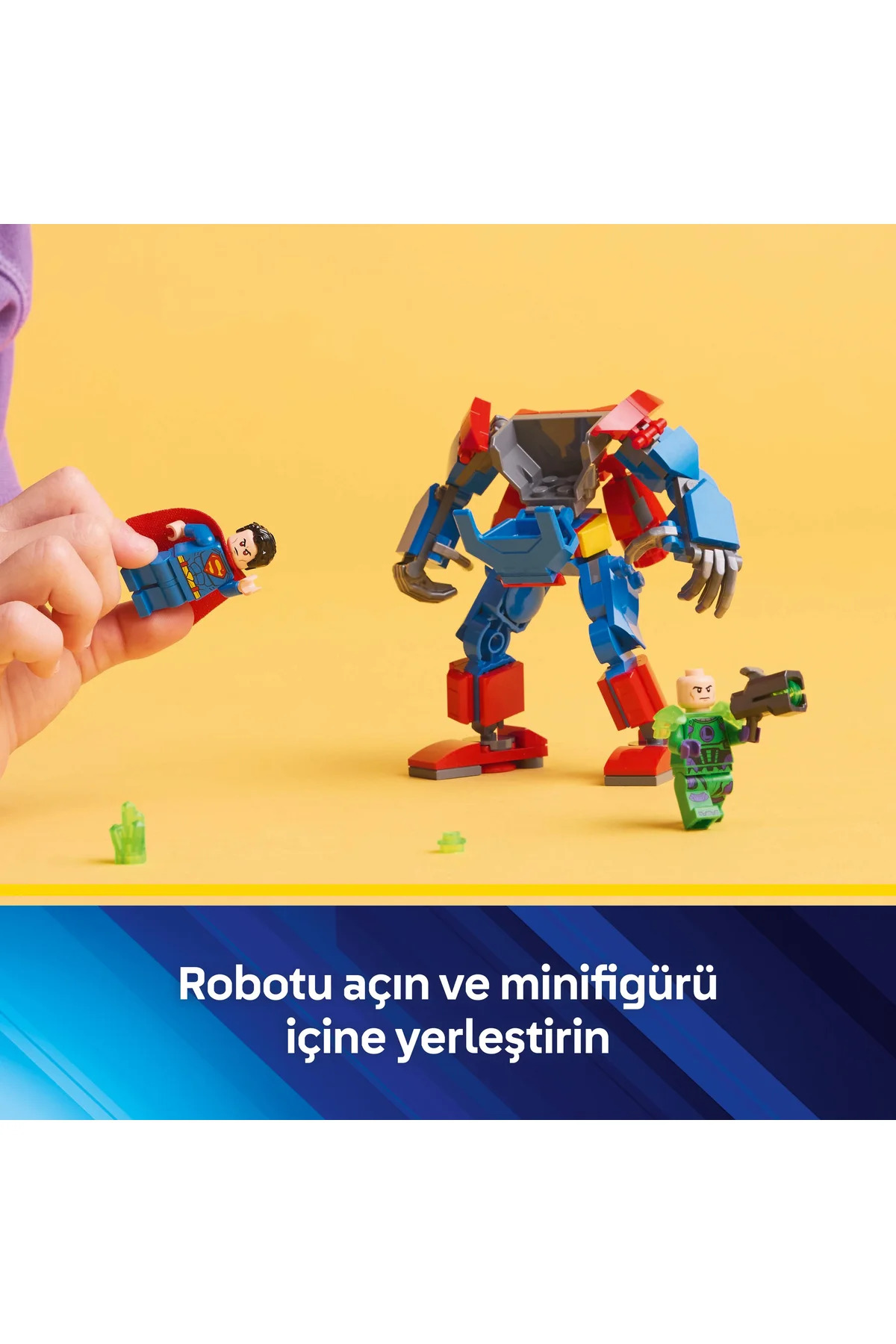 سوپرمن مکانیکی در مقابل لکس لوثر (76302) یک مجموعه بازی جسورانه از لگو دیسی مکانیکی است که برای کودکان 6 سال به بالا که عاشق اکشنهای قهرمانی و اسباببازیهای ماجراجویی عملی هستند، طراحی شده است. این مجموعه بازی لگو دیسی سوپرمن شامل 2 مینیفیگور است: سوپرمن با شنل پارچهای و سر برگشتپذیر که حالتهای چهره متفاوتی را نشان میدهد، و لکس لوثر با یک تیرانداز گلمیخی و کریستال کریپتونیت. این ربات مکانیکی قابل ساخت، دستها، پاها و انگشتان قابل حرکت دارد. نیمتنه آن باز میشود تا یک کابین خلبان نمایان شود که مینیفیگور سوپرمن میتواند در آن بنشیند. این ربات مکانیکی دارای 2 موتور قابل تنظیم در پشت خود است که به آن اجازه میدهد “پرواز کند”. برای سرگرمی دیجیتالی بیشتر، سازندگان میتوانند با استفاده از برنامه سرگرمکننده و بصری LEGO Builder، مدلها را به صورت سهبعدی بزرگنمایی، چرخش و ردیابی کنند.