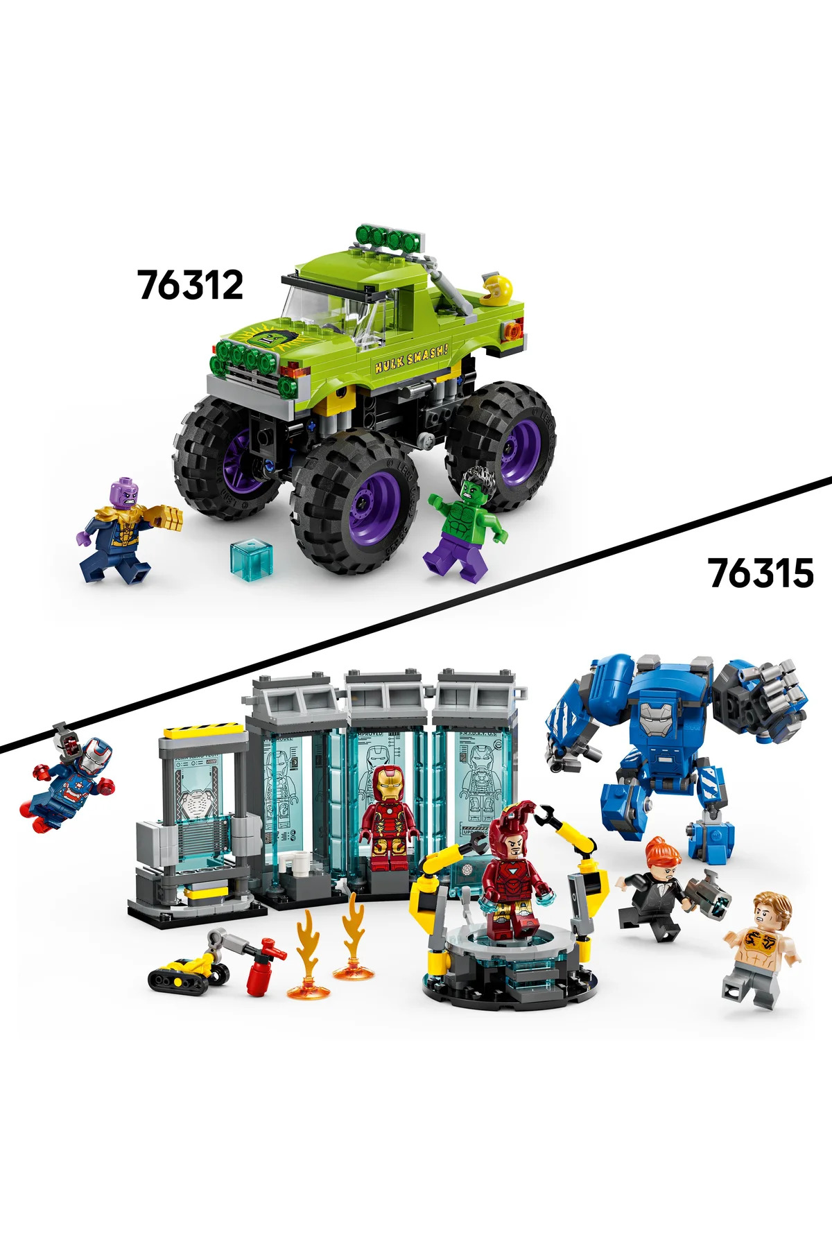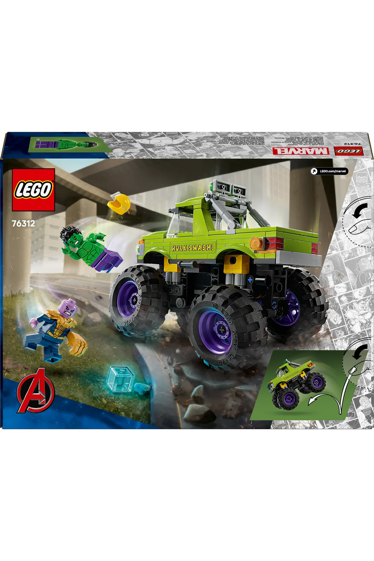 مجموعه ساختمانی کامیون هالک در مقابل تانوس (76312) یک مجموعه بازی لگو قابل ساخت ǀ مارول است که شامل کامیون سنگین هالک و 2 مینی فیگور سوپر هیرو میشود. این هدیه با کیفیت بالا که برای پسران و دختران 7 سال به بالا طراحی شده است، برای کودکانی که طرفدار فیلمهای انتقامجویان مارول، کامیونهای بزرگ و ماجراجوییهای مجموعه لگوی ساخت و بازی هستند، عالی است. این کامیون سنگین قابل ساخت لگو ǀ مارول دارای یک مینی فیگور هالک با کلاه ایمنی قابل جدا شدن و یک مینی فیگور تانوس با تسراکت و دستکش بینهایت است. کامیون سوپر هیرو دارای یک کابین بازشونده است که دسترسی به صندلی راننده و فضای کافی برای مینی فیگور هالک را فراهم میکند. کاپوت سبز با کلمات «هالک را در هم بشکن!» و صورت هالک تزئین شده است. این مگا کامیون با چرخهای چرخان بزرگ، طراحی بادوام و سیستم تعلیق جاذب ضربه، میتواند از پس سختترین کارها برآید. سازندگان میتوانند روی مدلها زوم کنند، آنها را به صورت سهبعدی بچرخانند و با برنامه LEGO Builder از پیگیری پیشرفت خود لذت ببرند. این مجموعه شامل ۲۲۹ قطعه است.