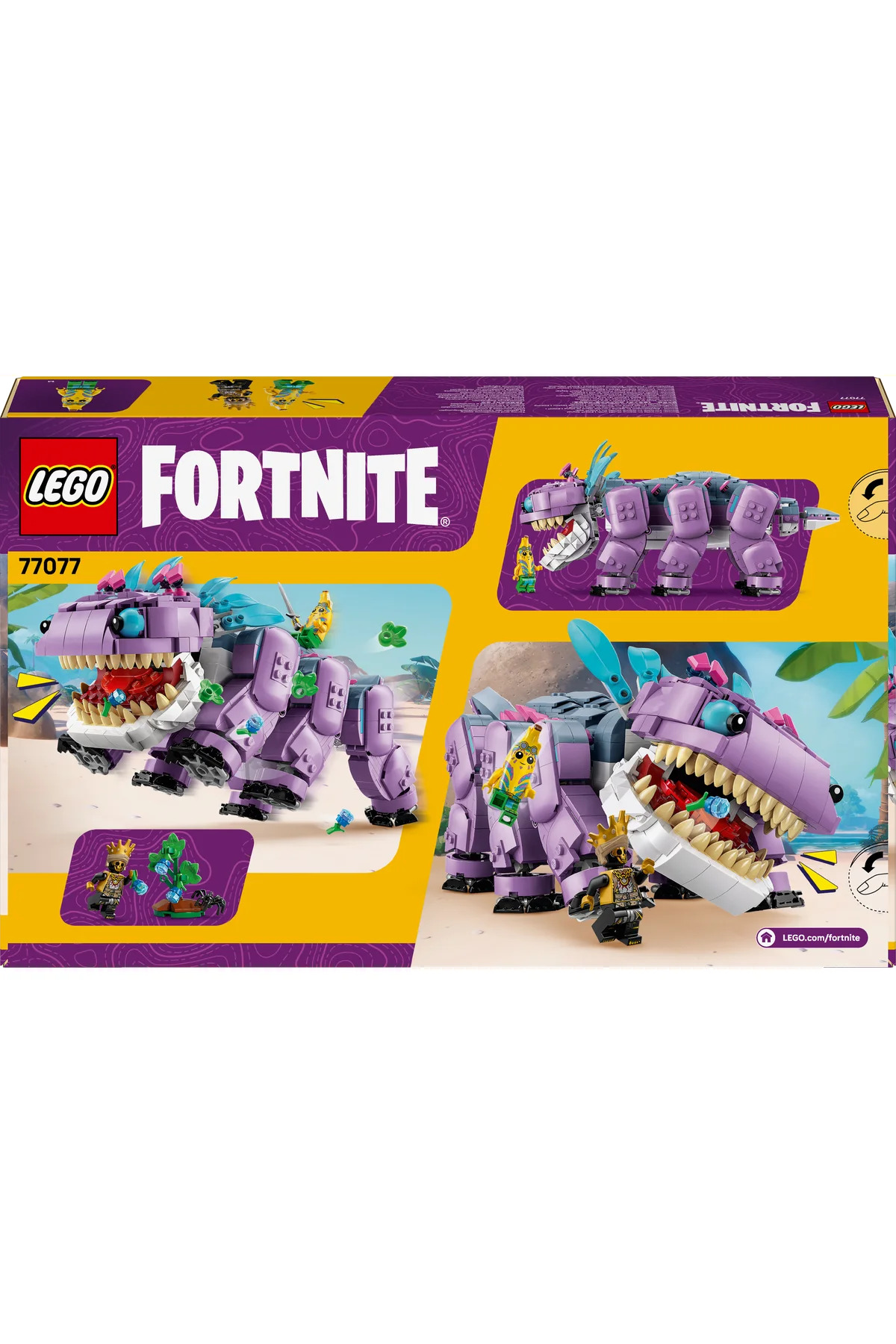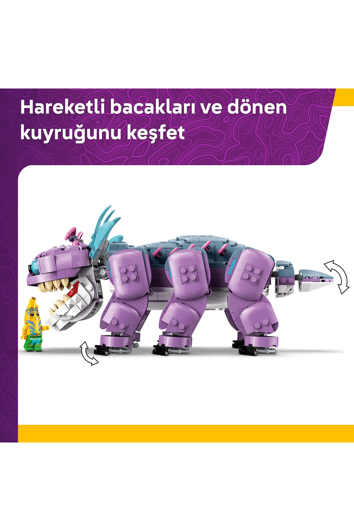 با مجموعه ساختنی لگو فورتنایت تونتیش ۷۷۰۷۷، کودکان ۱۰ سال به بالا میتوانند شخصیت آشنای تونتیش از دنیای بازیهای ویدیویی را با آجرهای لگو زنده کنند. این فیگور حیوان بزرگ به یک مدل دقیق با پاهای قابل حرکت، دهان باز و بسته شونده و دم چرخان تبدیل میشود. فرآیند ساختن نه تنها سرگرمکننده است، بلکه مهارتهای حرکتی و تخیل کودکان را نیز توسعه میدهد. عنصر بوتهای قابل جابجایی موجود میتواند به عنوان توت تونتیش استفاده شود. بچهها میتوانند سناریوهای سرگرمکنندهای ایجاد کنند که در آن ابتدا تونتیش را اذیت کنند و سپس توت تونتیش را به او بدهند تا او را خوشحال کنند. برای افزودن عمق به بازی، دو مینیفیگور – Island Adventurer Victorious و یک Golden Bone – که میتوانند به پشت تونتیش متصل شوند، گنجانده شده است. این شخصیتها بچهها را تشویق میکنند تا ایدههای جدید و خلاقانه را در بازیهای نقشآفرینی خود کشف کنند. این مجموعه همچنین یک سورپرایز دیجیتالی برای علاقهمندان به بازیهای ویدیویی ارائه میدهد: اسکن کد QR در دستورالعملهای ساختن، لباس ویژه Island Adventurer Victorious را برای استفاده در دنیای فورتنایت باز میکند. این مدل ۱۰۸۴ تکهای میتواند به عنوان یک سازه تزئینی نیز به نمایش گذاشته شود.