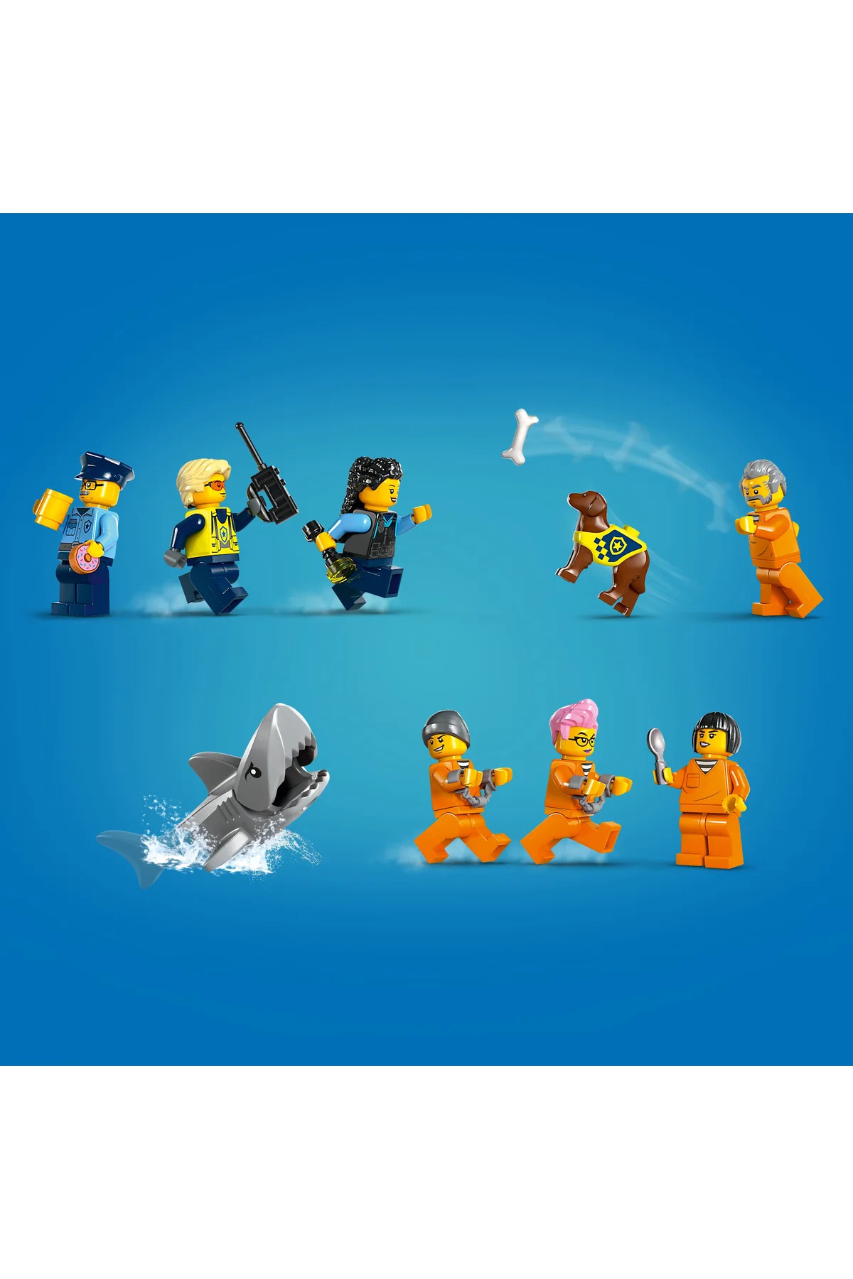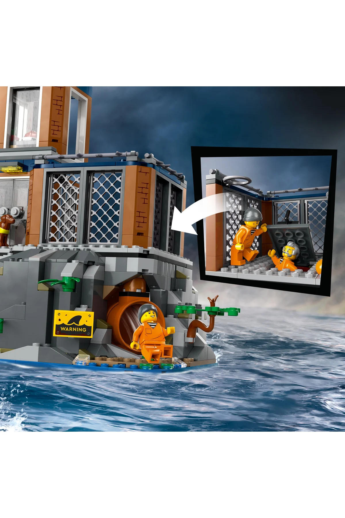تنشها در جزیره زندان بالا گرفته است، جایی که تحت تعقیبترین مجرمان شهر لگو در حال برنامهریزی یکی از بزرگترین و دیوانهوارترین فرارهای تاریخ هستند! زندانیان جدید با قایق تندروی پلیس از راه میرسند، در حالی که سایر زندانیان در حال دستکاری نقشههای خود هستند. مراقب برج کنترل باشید و هلیکوپتر پلیس را نیز از نزدیک زیر نظر داشته باشید؛ این زندان آنقدرها هم که به نظر میرسد امن نیست! آیا این صدای حفاری است؟