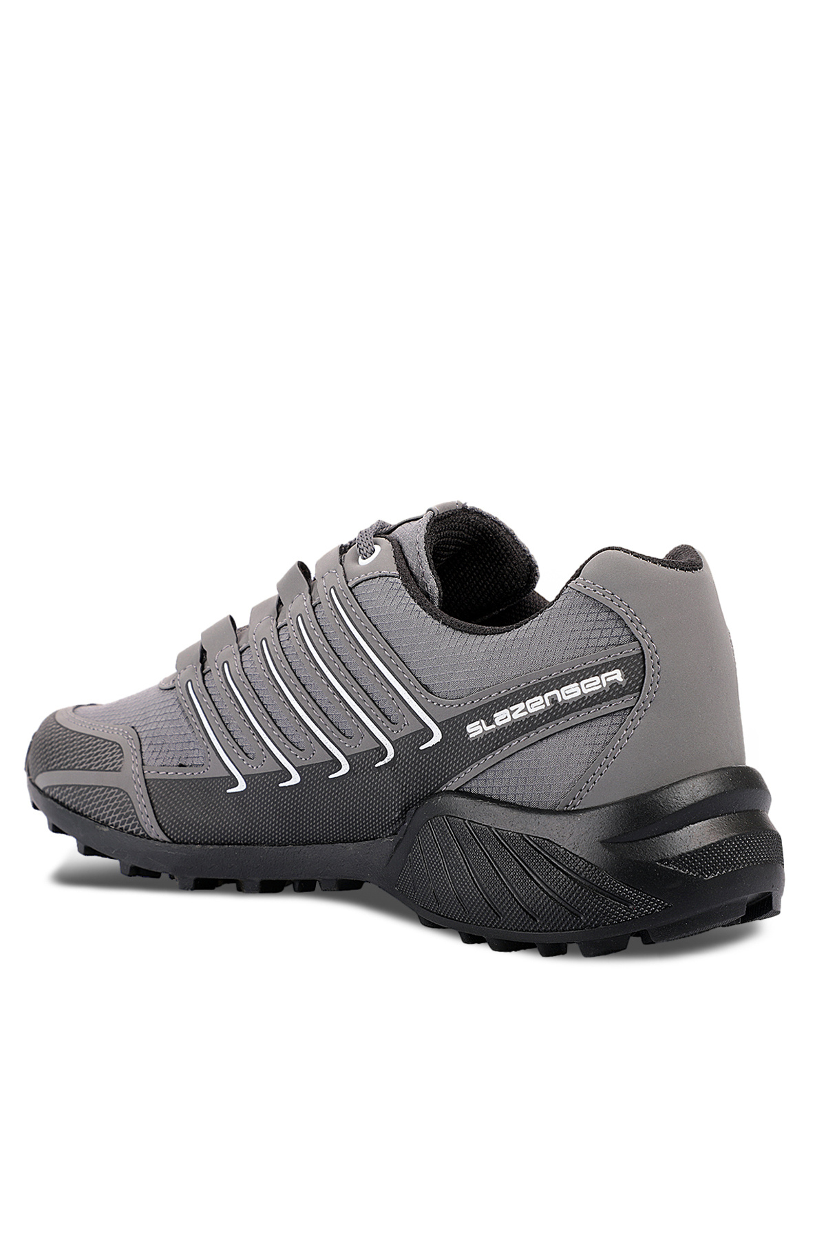 Slazenger ADMISSION IN یک کفش مردانه در فضای باز است که با طراحی خاکستری تیره/سفید خود متمایز است.