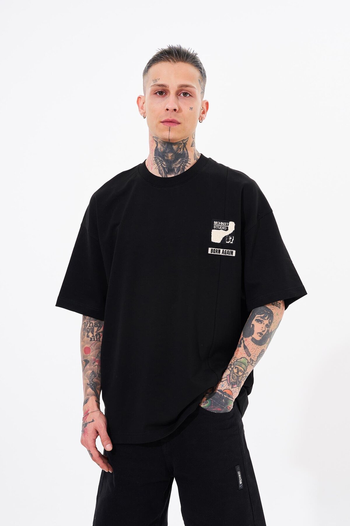 خرید اینترنتی تی‌شرت مردانه مشکی گشاد و گلدوزی شده فنی برند ماشینیست Machinist اورجینال از Machinist Clothing نمایندگی ترکیه