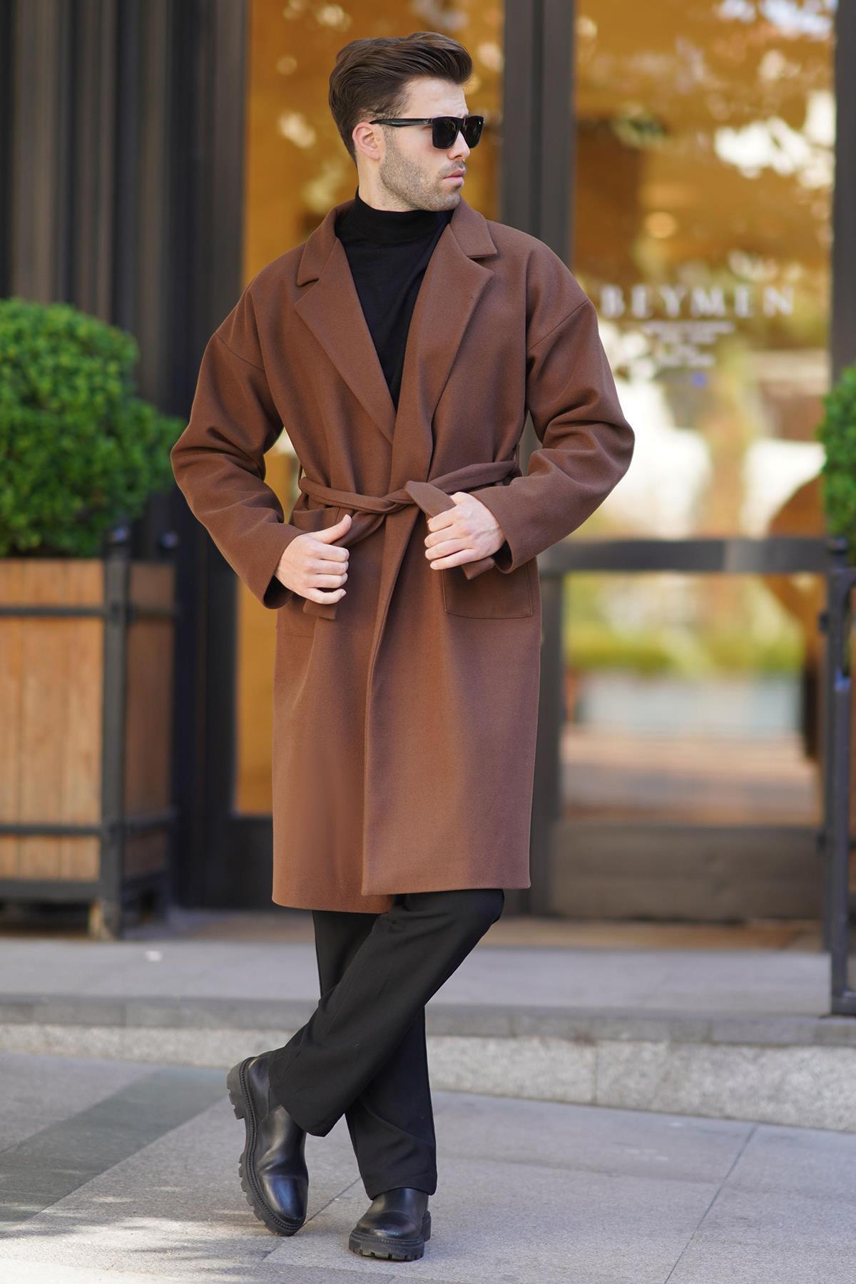 خرید اینترنتی کاپشن ترمه بلند دوبل قهوه ای 7215 برند مدمکست Madmext اورجینال از Madmext نمایندگی ترکیه