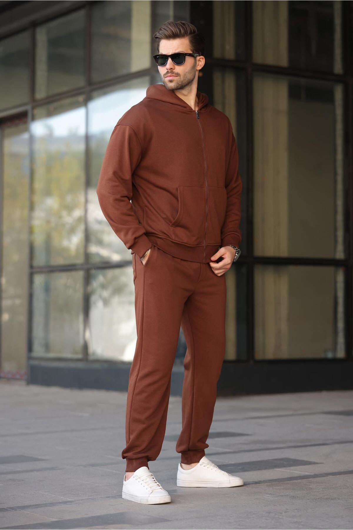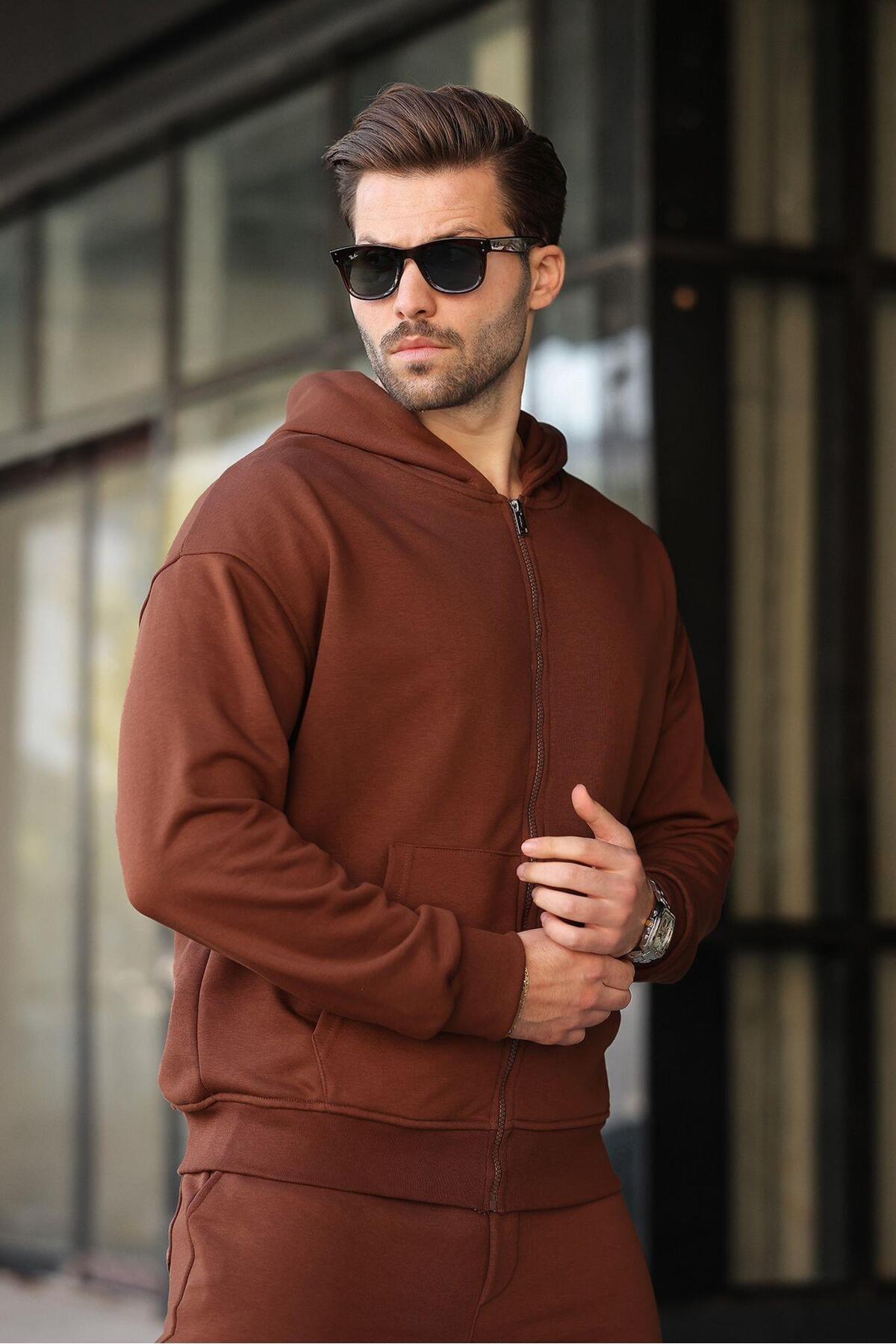 خرید اینترنتی لباس ورزشی مردانه زیپدار کلاهدار قهوهای تیره E7331 برند مدمکست Madmext اورجینال از Madmext نمایندگی ترکیه