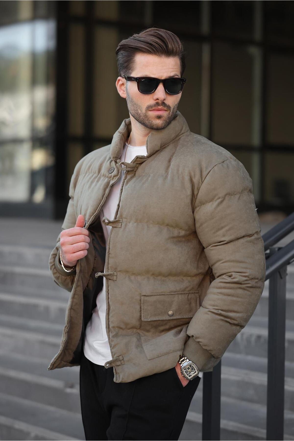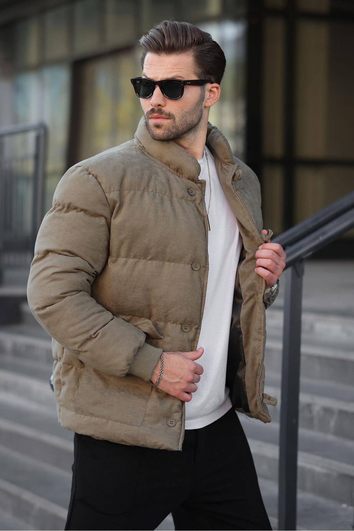 خرید اینترنتی کاپشن پافری مردانه یقه دکمه دار خاکی E7435 برند مدمکست Madmext اورجینال از Madmext نمایندگی ترکیه