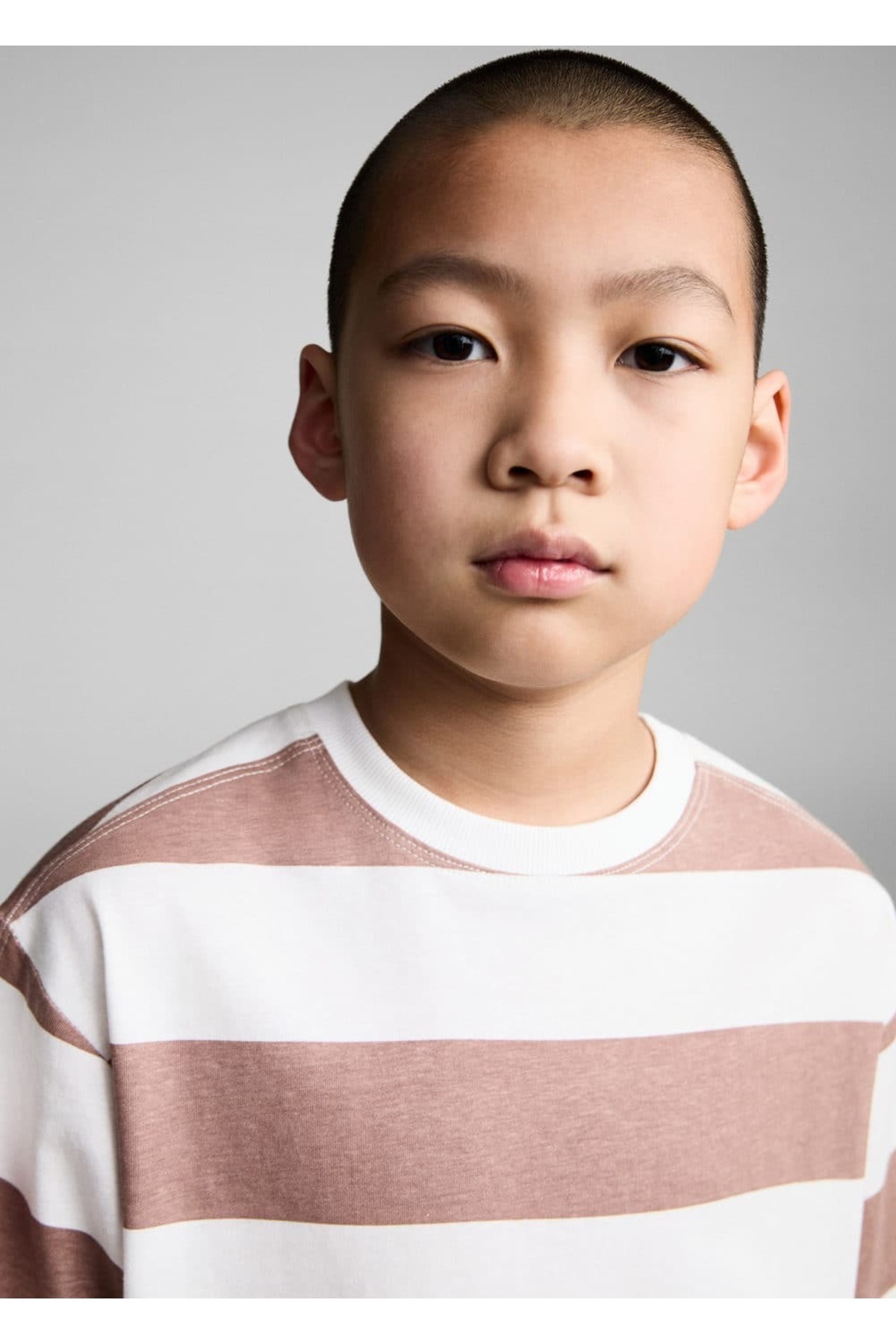 ۱۰۰٪ پنبه، برش بزرگ، طرح راه راه، ساختار سبک و صاف، یقه گرد.