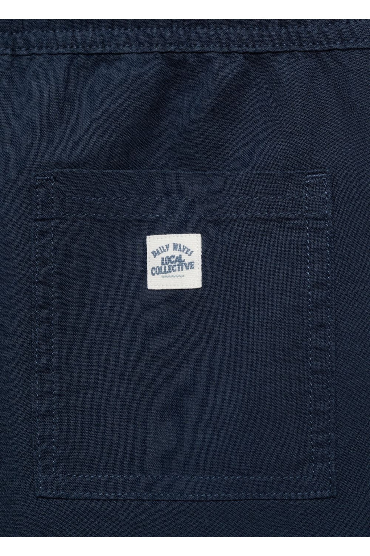پارچه ترکیبی از کتان، طرح کوتاه، کمر کشی بنددار، دو جیب کناری.