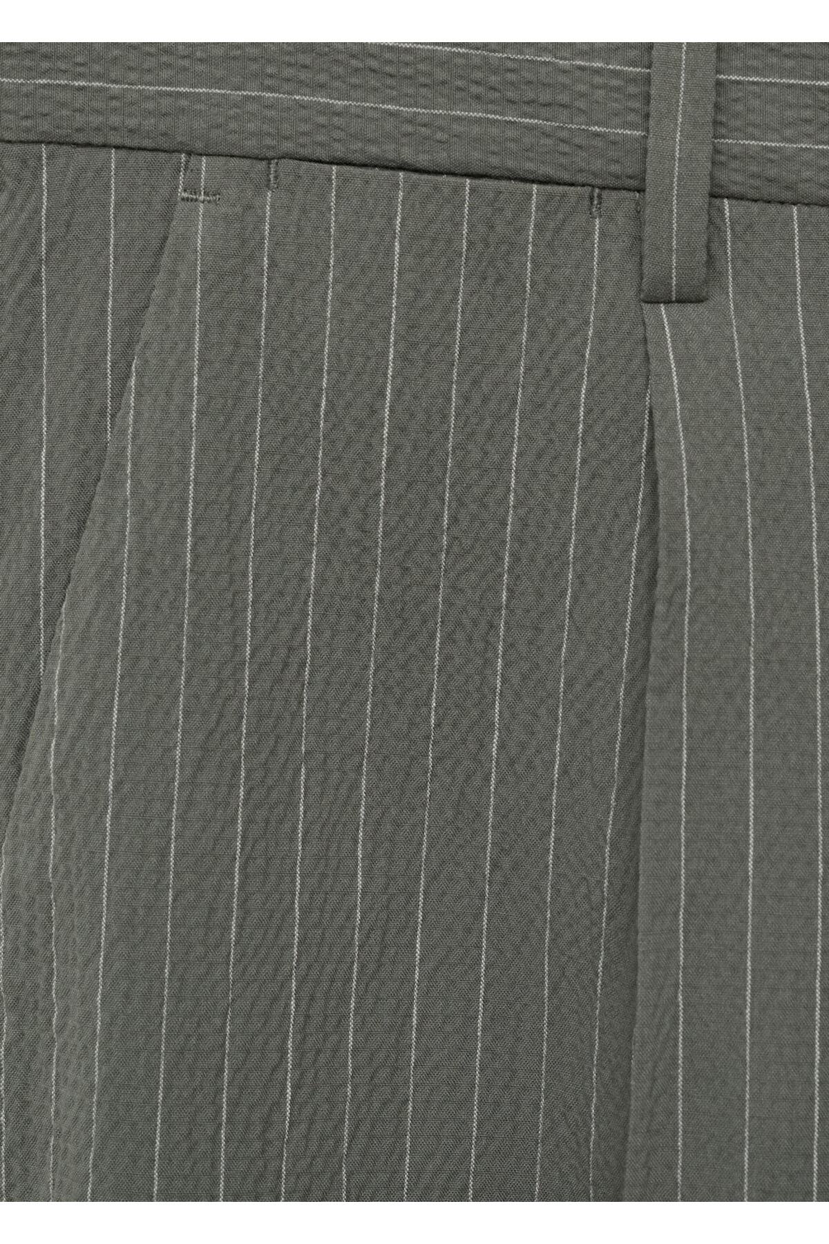 جنس نخی، چینو، حلقه کمربند، کمر کشی، دو جیب کناری، جیب دکمهدار در پشت، بسته شدن با زیپ و دکمه.