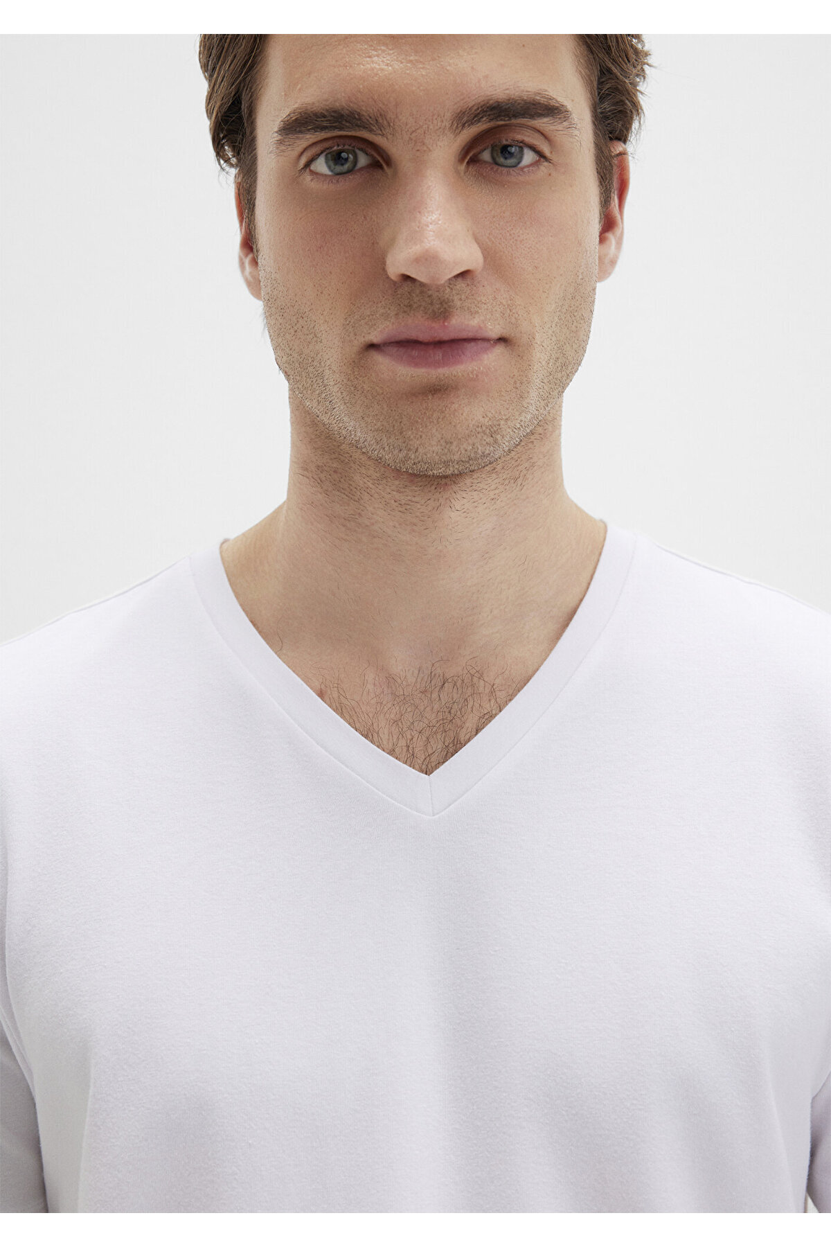 خرید اینترنتی تی شرت پایه سفید یقه V کشدار با برش / برش صاف کننده بدن 061748-620 برند ماوی Mavi اورجینال از Mavi نمایندگی ترکیه