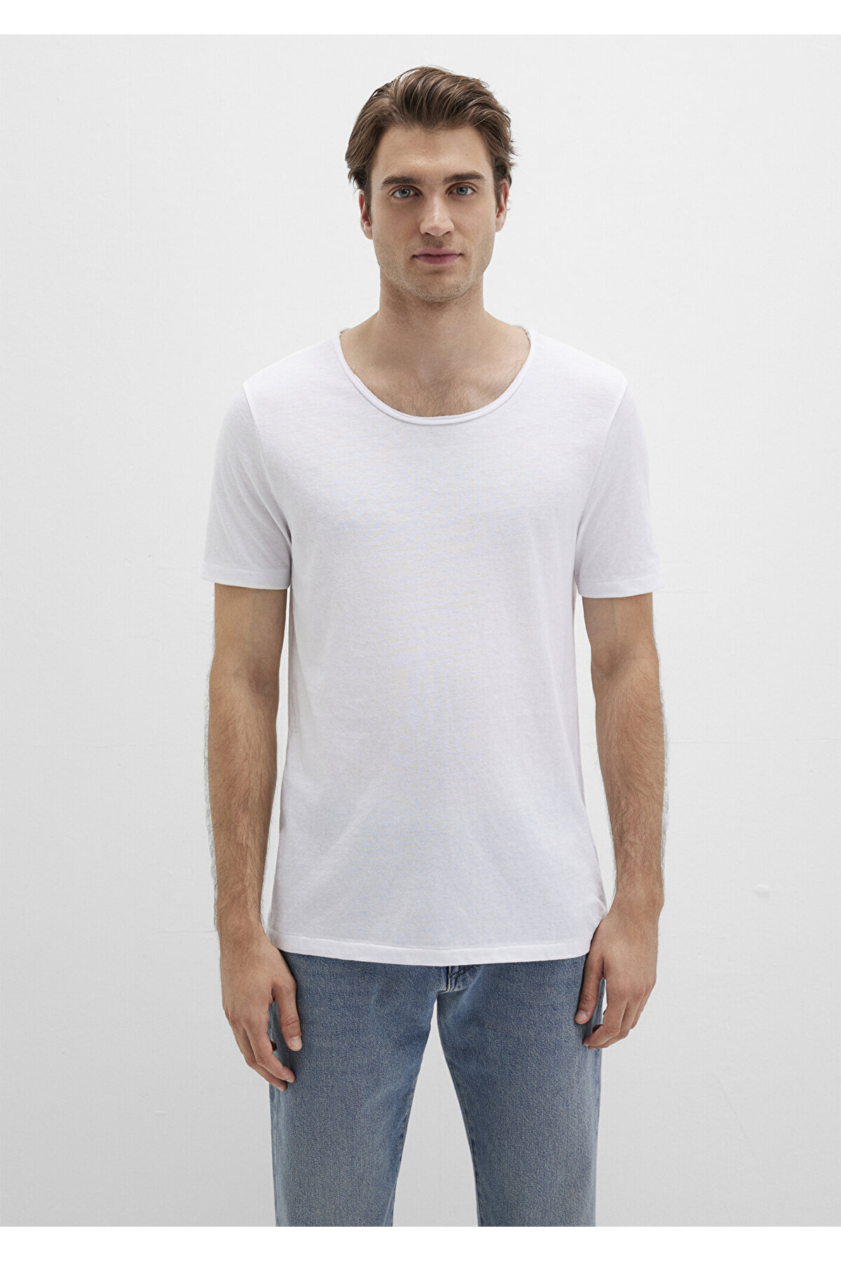 خرید اینترنتی تی شرت سفید با جزئیات یقه نصب شده / برش صاف کننده بدن 064019-620 برند ماوی Mavi اورجینال از Mavi نمایندگی ترکیه
