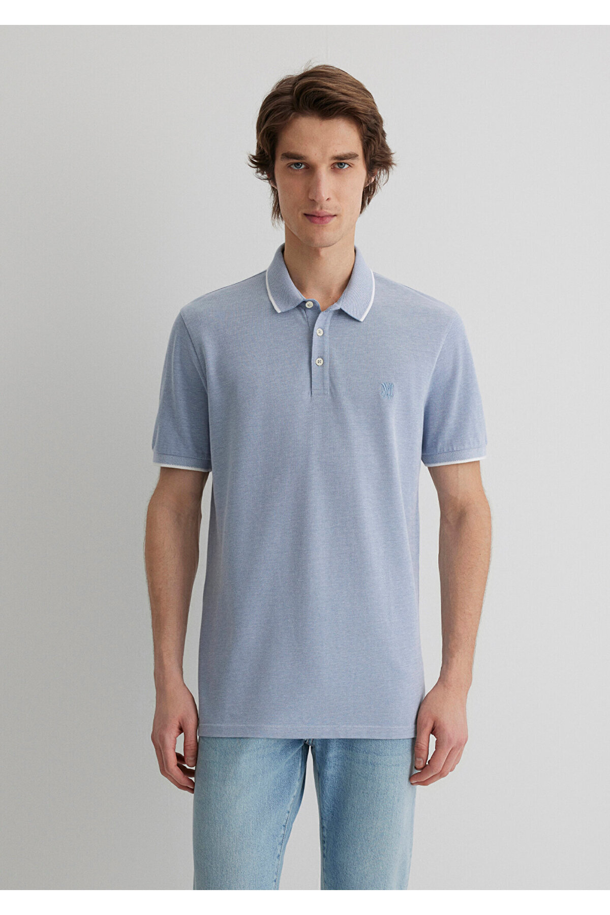 پیراهن پولو آبی با جزئیات راه راه از مجموعه مردانه Mavi.