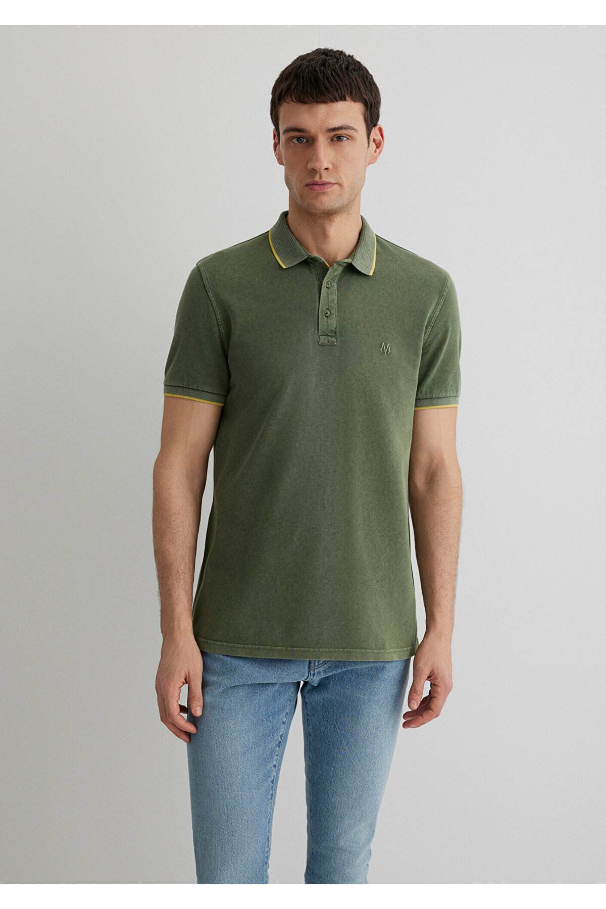 پیراهن پولو سبز با جزئیات راه راه رنگارنگ از مجموعه مردانه Mavi.