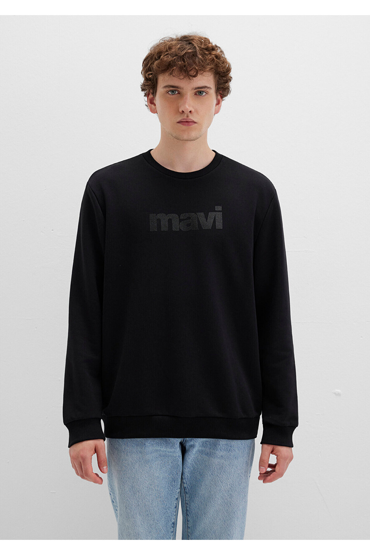 سویشرت مشکی با چاپ لوگوی آبی از مجموعه مردانه Mavi.