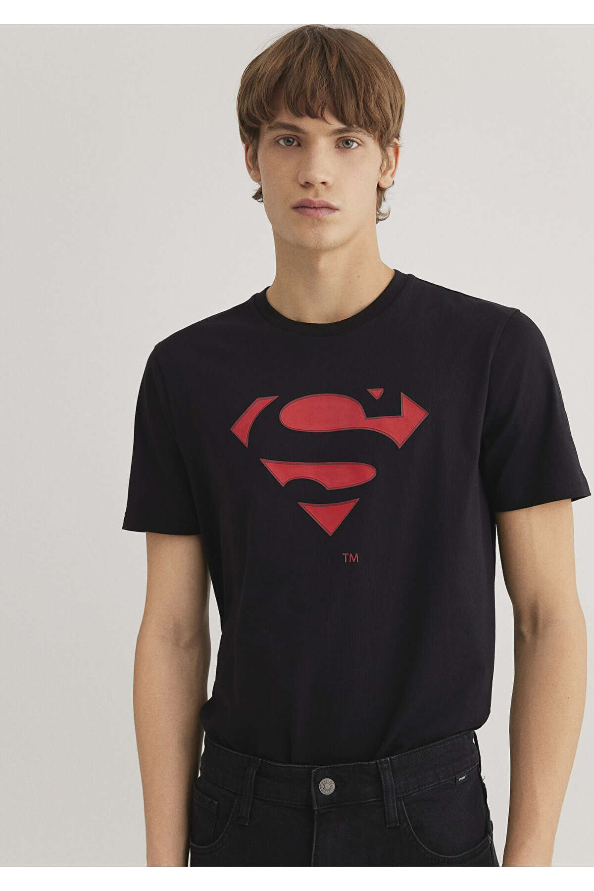 تی شرت مشکی چاپ سوپرمن از مجموعه مردانه Mavi.