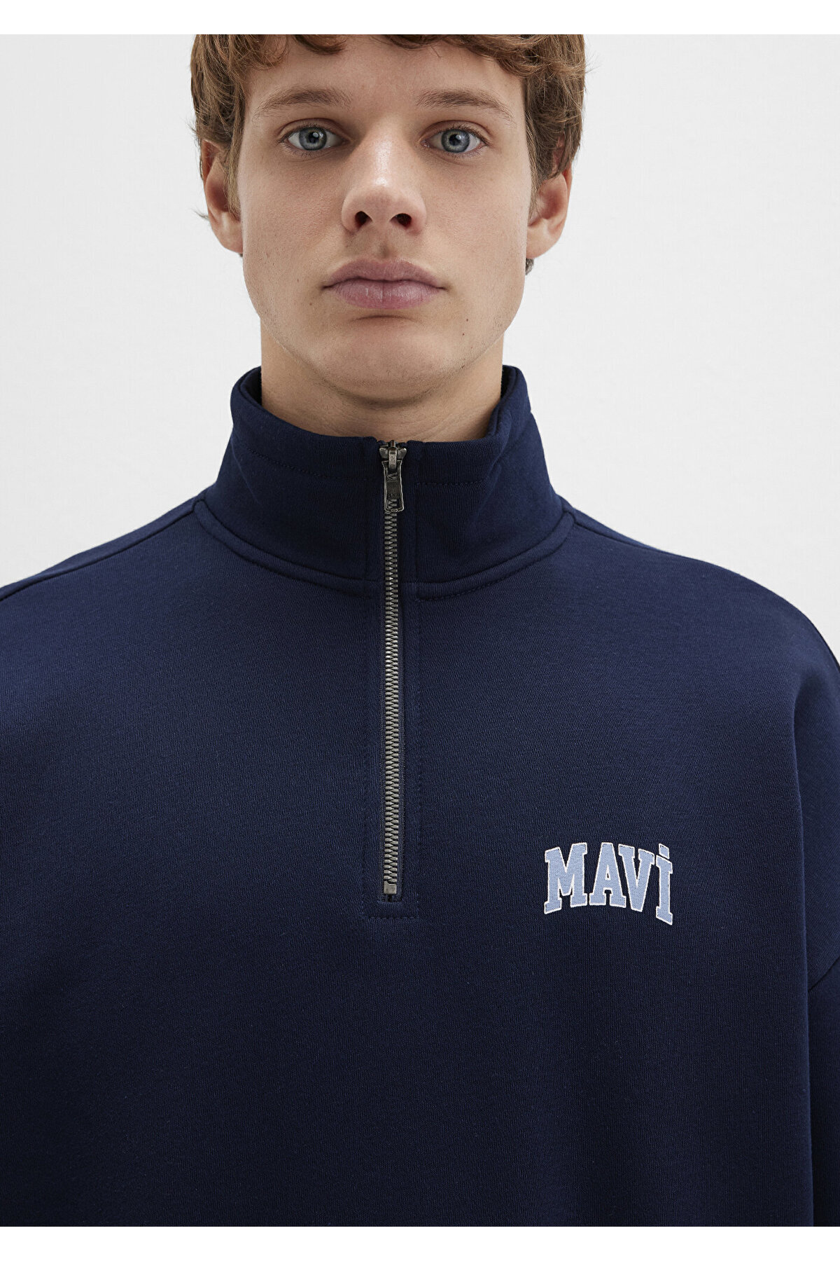 خرید اینترنتی سویشرت نیمه زیپ دار با چاپ لوگو آبی سرمه ای 0S10208-70497 برند ماوی Mavi اورجینال از Mavi نمایندگی ترکیه