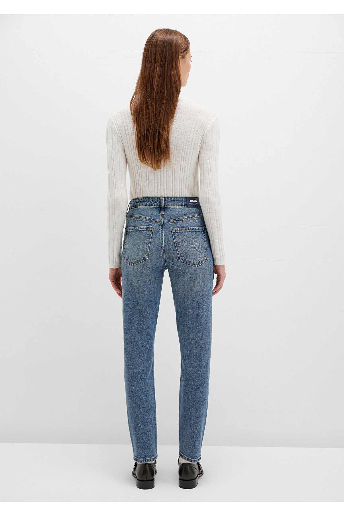 شلوار جین مام با کمر و برش باسن فرمدهنده.