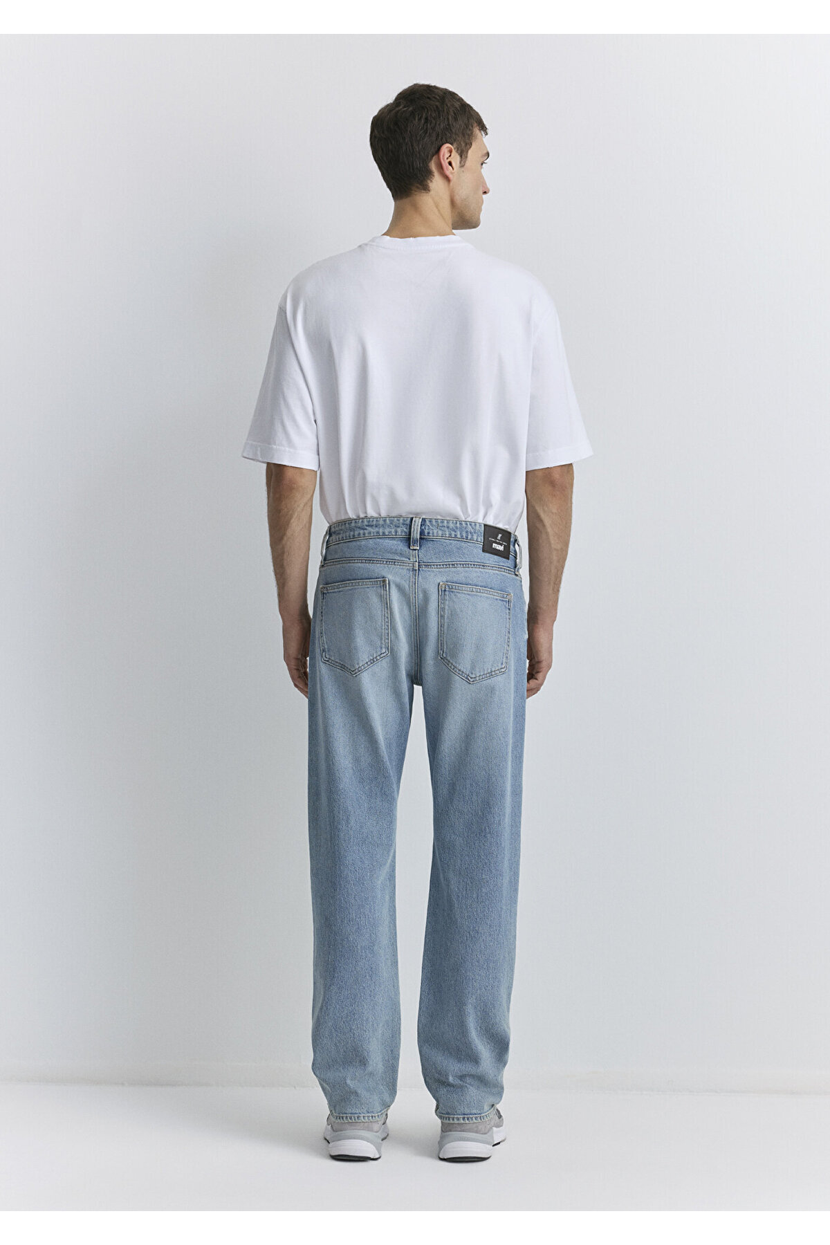 ساق پای صاف کمر منظم. ابعاد مدل: قد: 189.5 سانتی متر / دور کمر: 80 سانتی متر / سینه: 98 سانتی متر / باسن: 98 سانتی متر. جنس: 99% پنبه 1% الاستین. نوع پارچه: جین. کاف: پای راست. آستین: پای راست. جنسیت: مردانه. تناسب: شل. کمر: کمر معمولی. محل تولید: ترکیه.