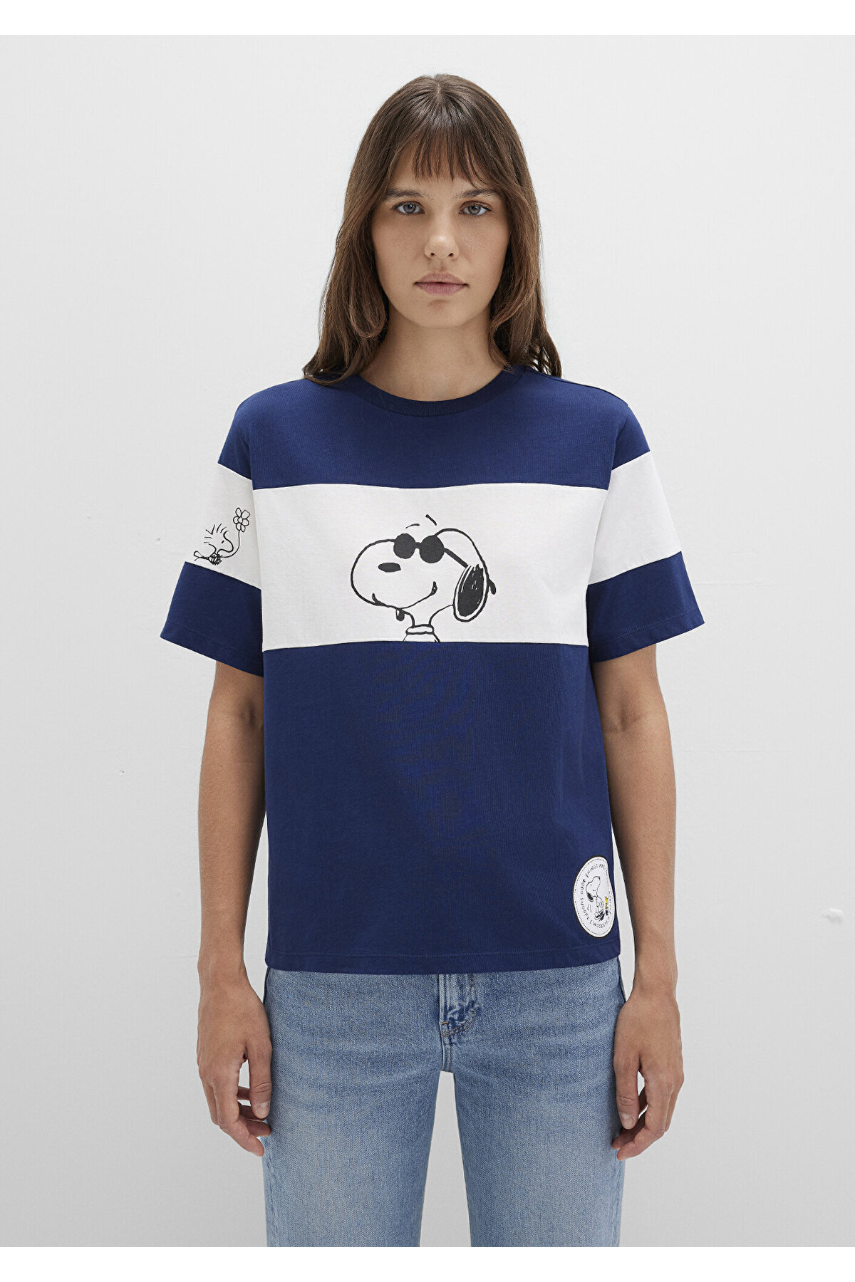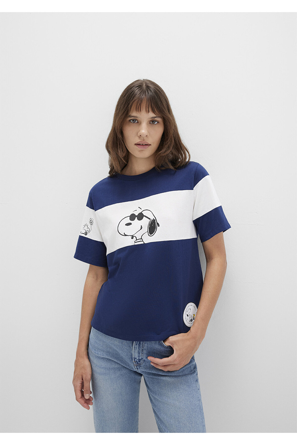 خرید اینترنتی تی شرت آبی سرمه ای چاپ اسنوپی با تناسب معمولی / برش معمولی 1613671-70491 برند ماوی Mavi اورجینال از Mavi نمایندگی ترکیه