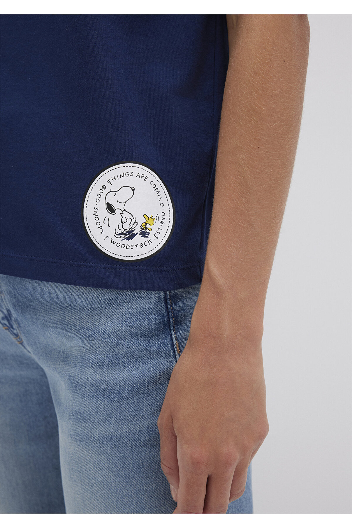 تی شرت آبی سرمه ای با چاپ اسنوپی از مجموعه زنانه Mavi.