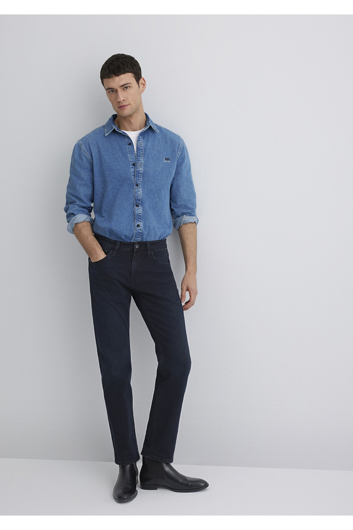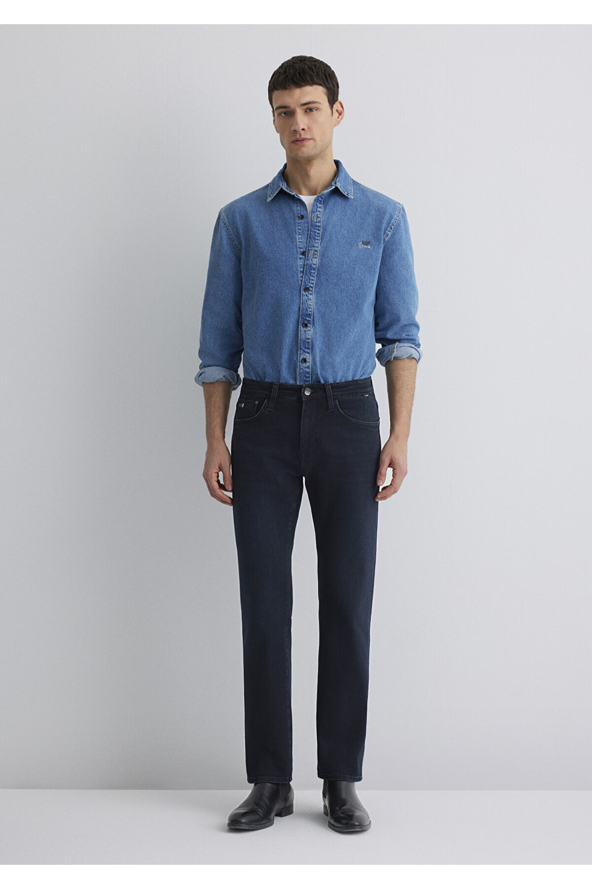 منظم راست کمر منظم پای راست. ابعاد مدل: قد: 189.5 سانتی متر / دور کمر: 80 سانتی متر / سینه: 98 سانتی متر / باسن: 98 سانتی متر. نوع پارچه: جین. آستین: پای راست. کاف: پای راست. جنسیت: مرد. کمر: کمر معمولی. تناسب: منظم و مستقیم. محل تولید: ترکیه.