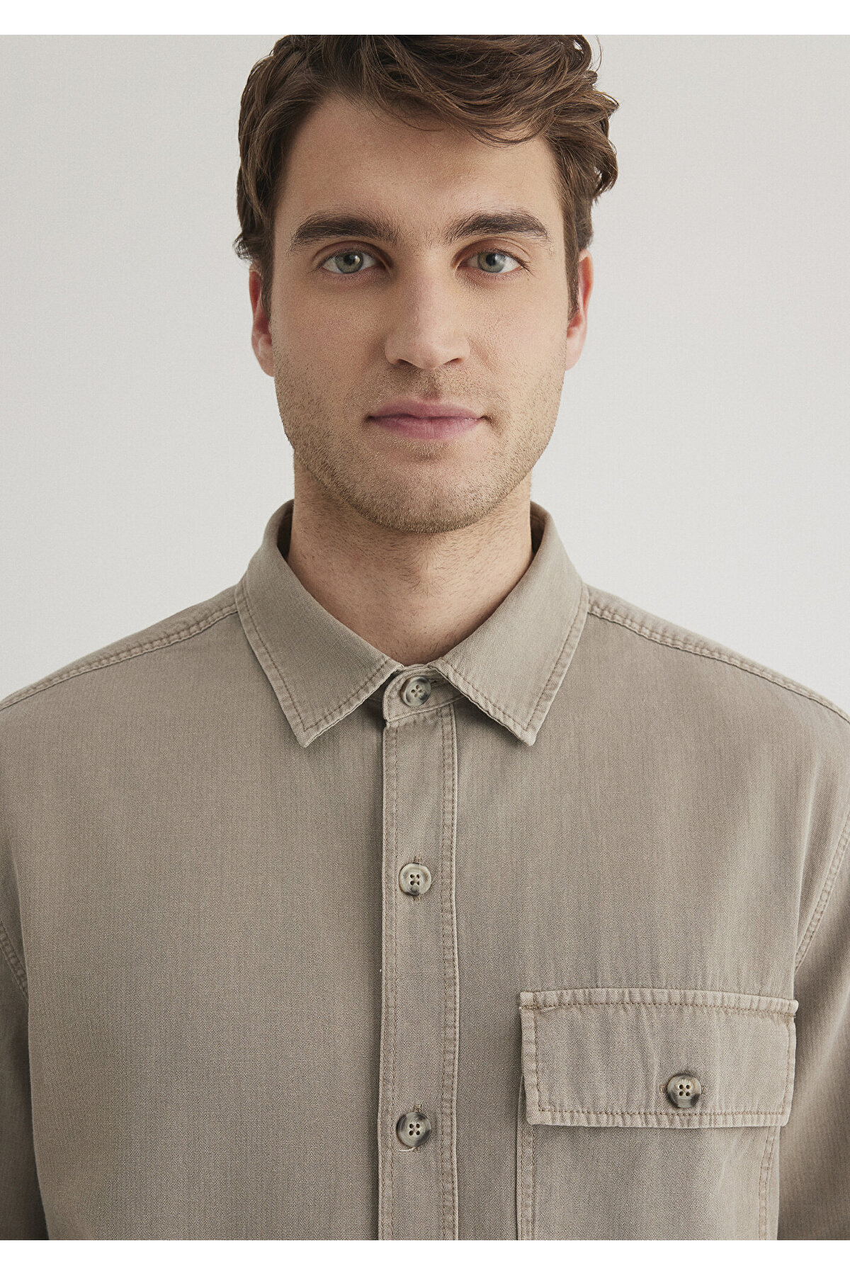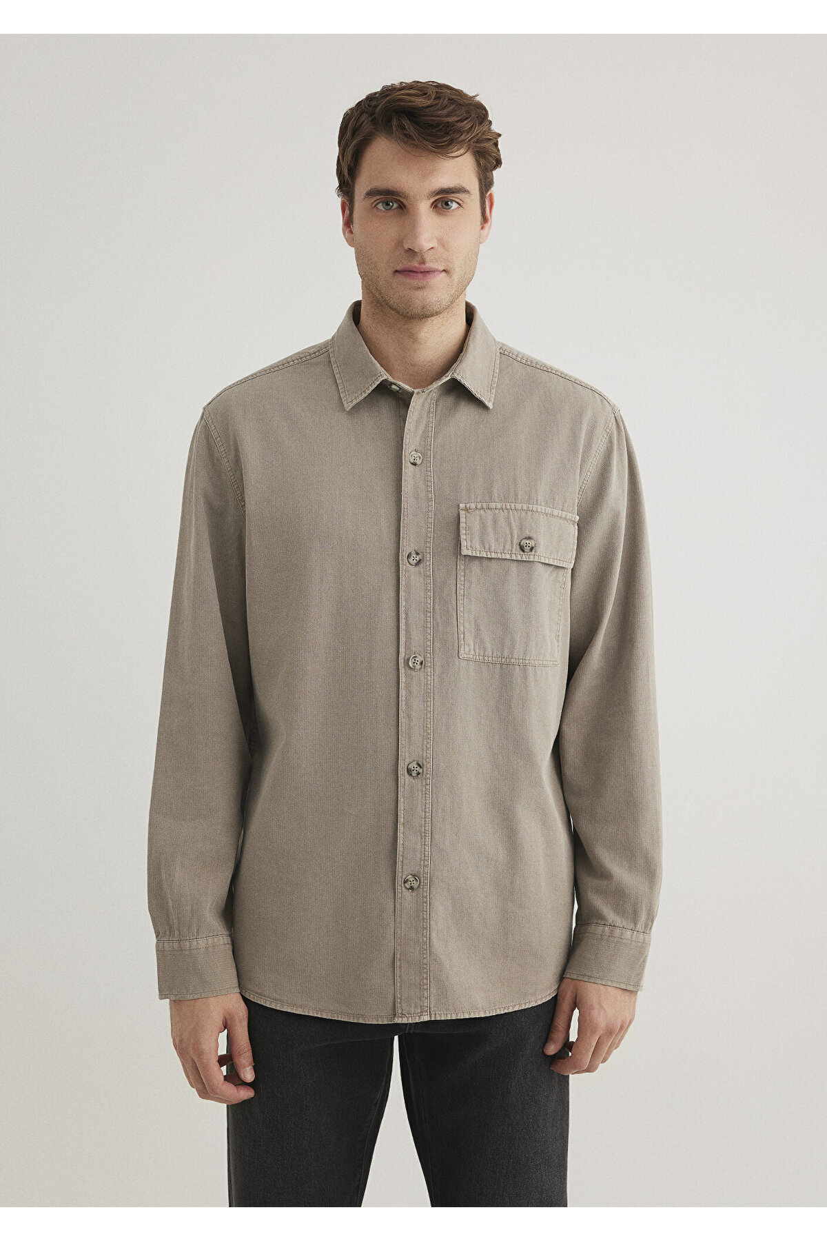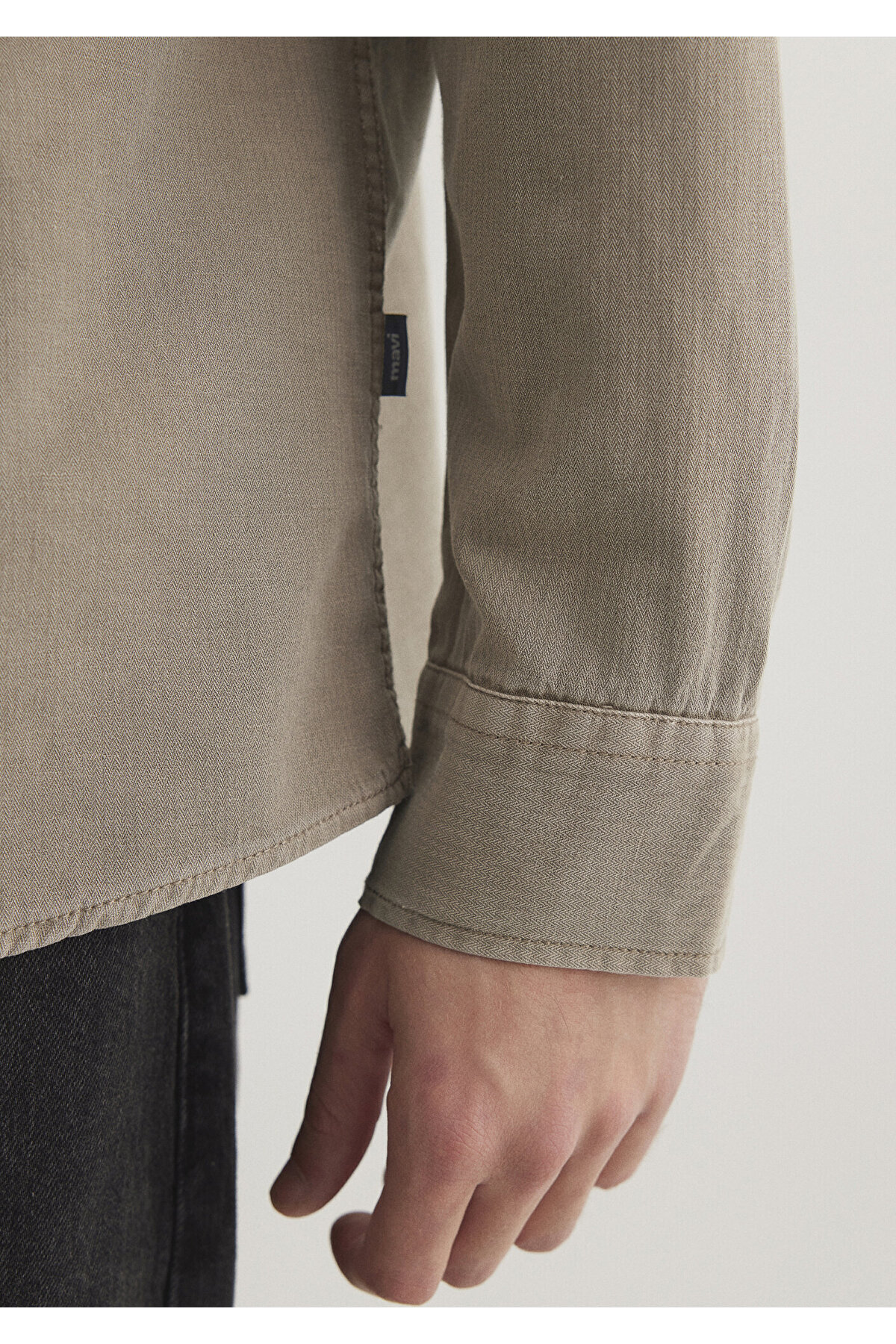 خرید اینترنتی پیراهن قهوه ای با تناسب معمولی / برش معمولی 0211374-80656 برند ماوی Mavi اورجینال از Mavi نمایندگی ترکیه