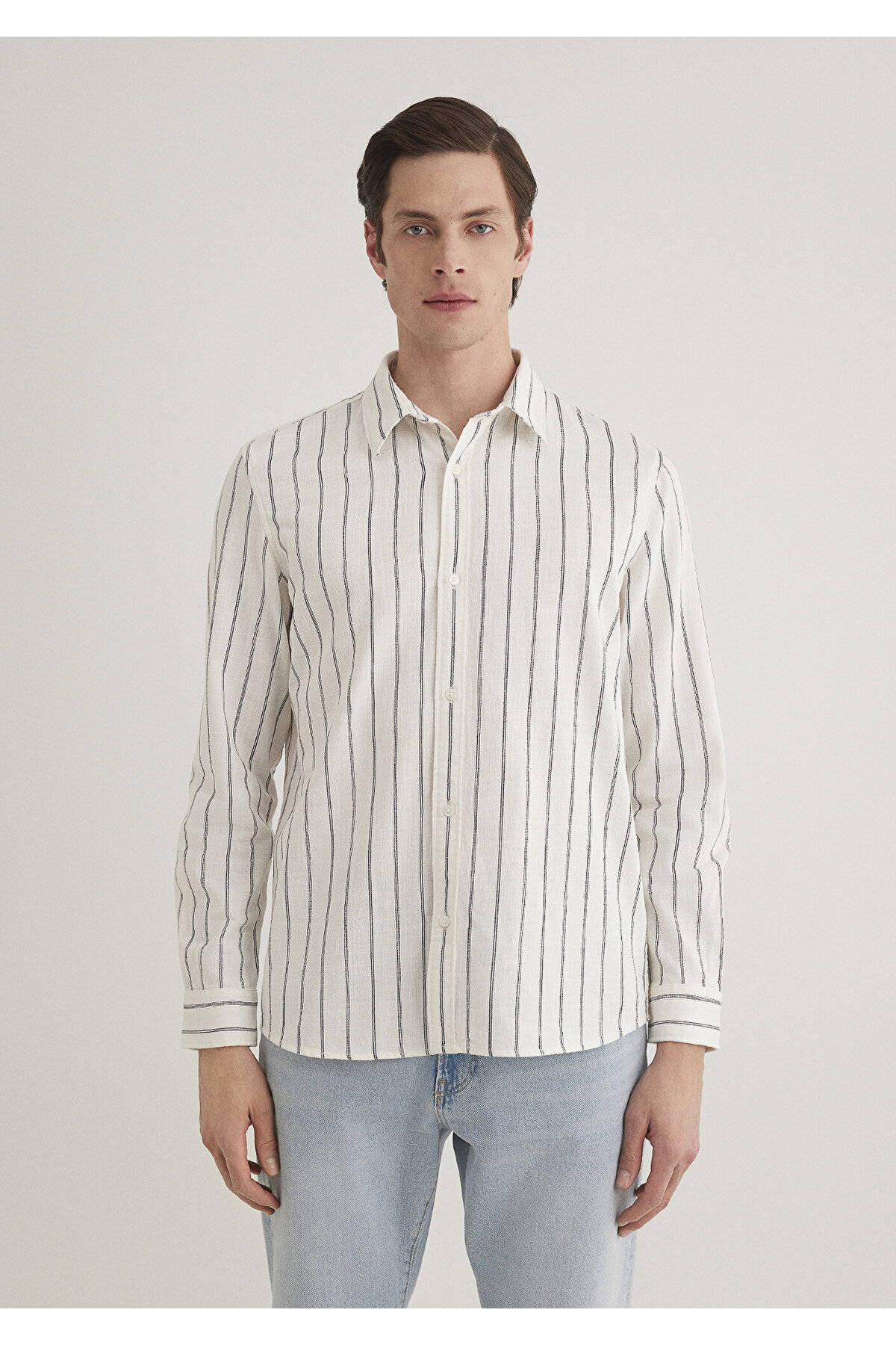 خرید اینترنتی پیراهن راه راه کتانی با تناسب معمولی / برش معمولی 0211380-87737 برند ماوی Mavi اورجینال از Mavi نمایندگی ترکیه