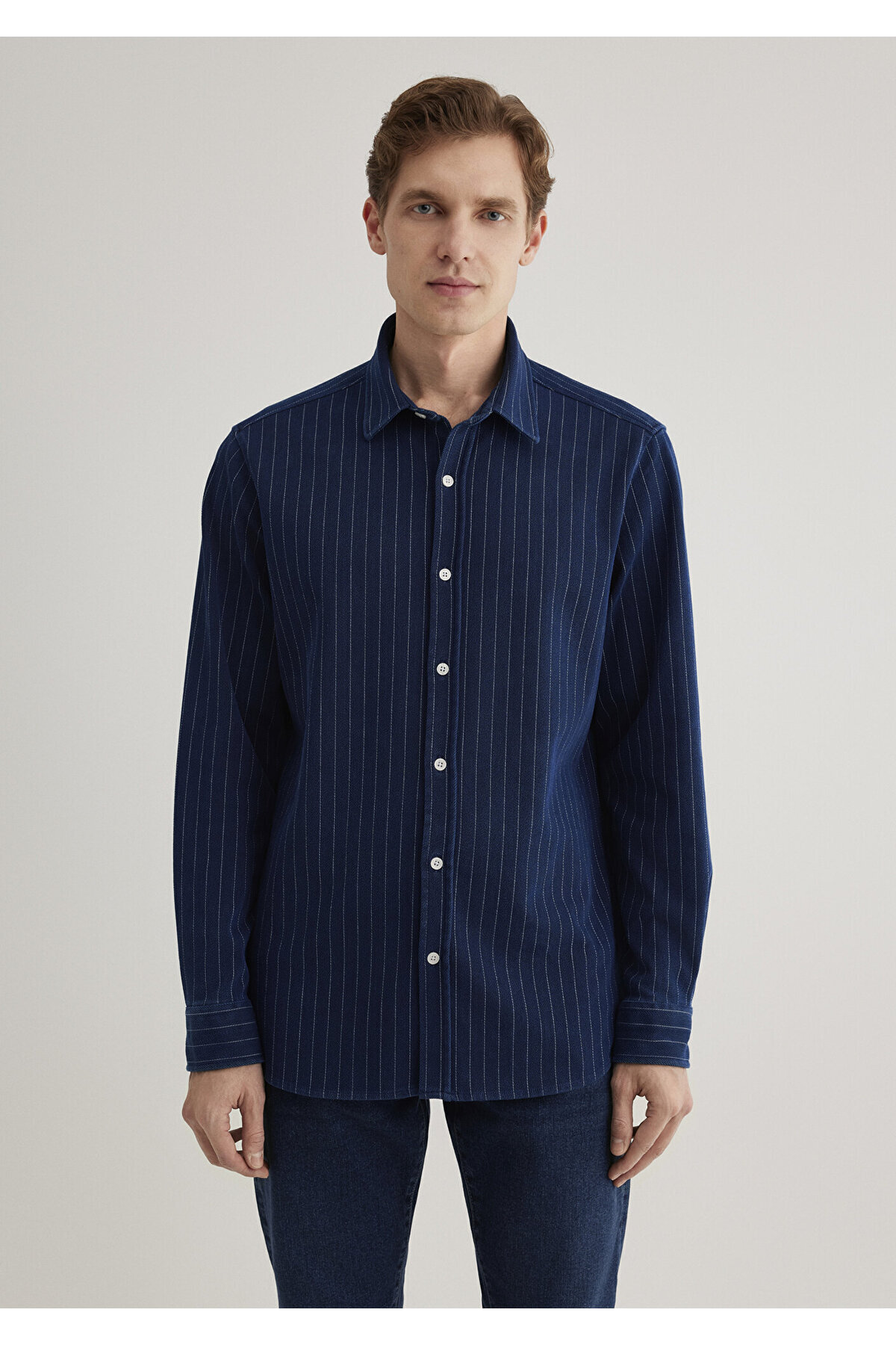 پیراهن آبی سرمه ای راه راه از مجموعه مردانه Mavi.