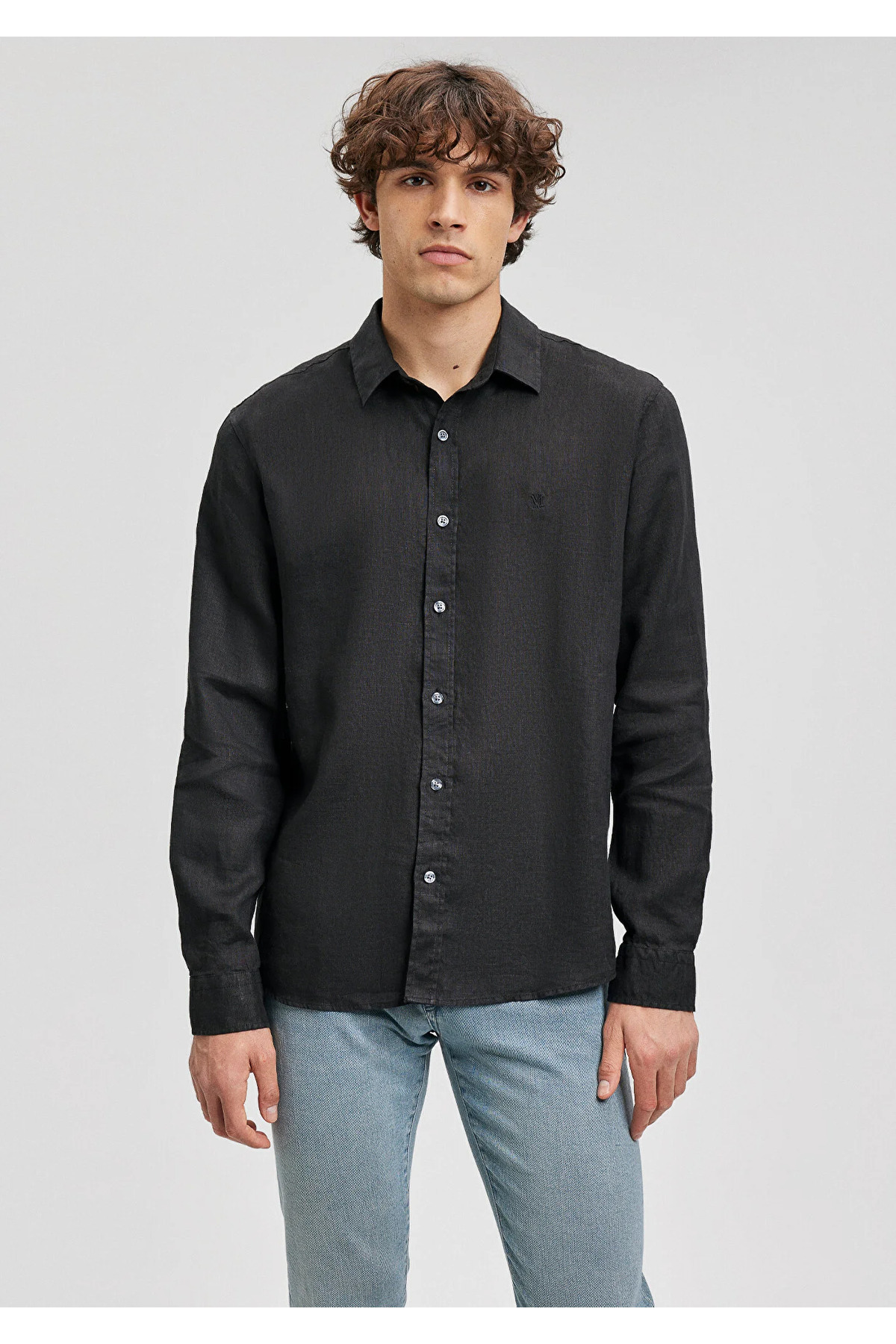 پیراهن کتانی مشکی از مجموعه لینن تاچ Mavi.