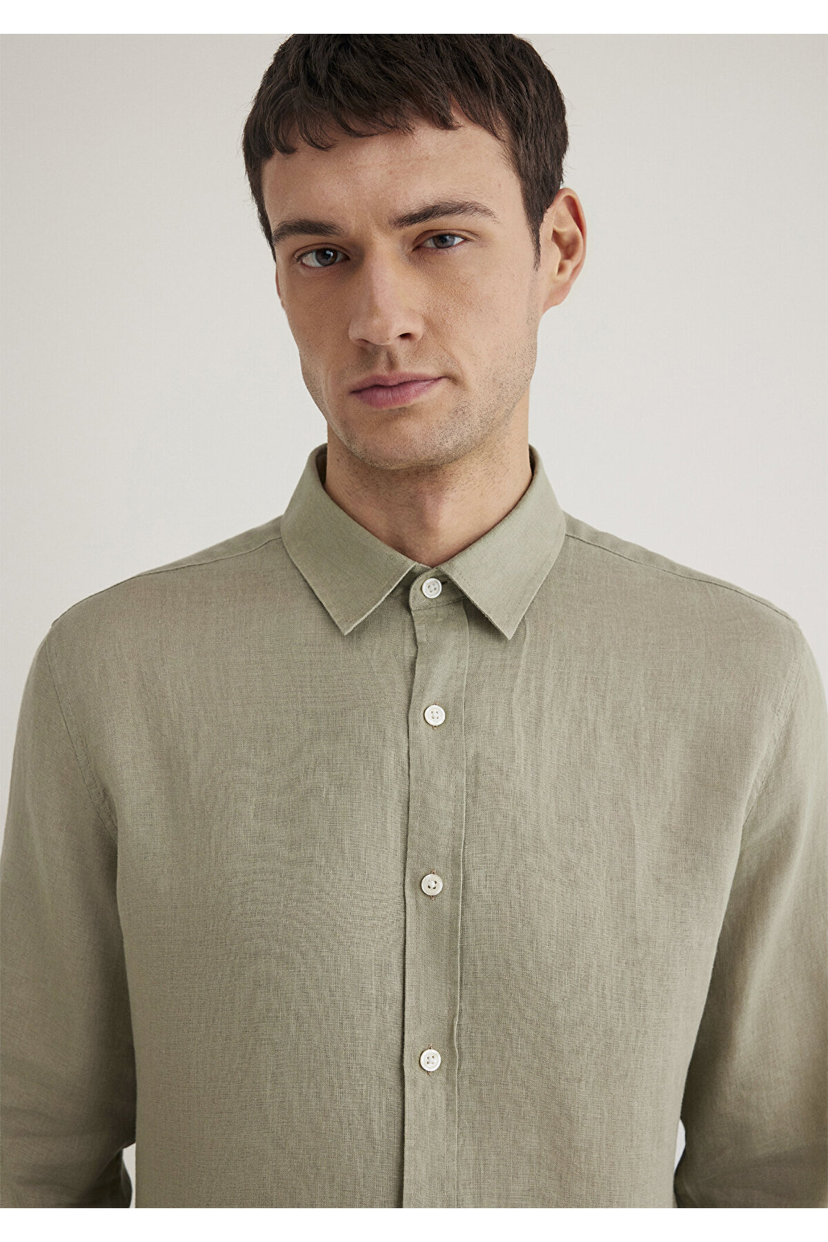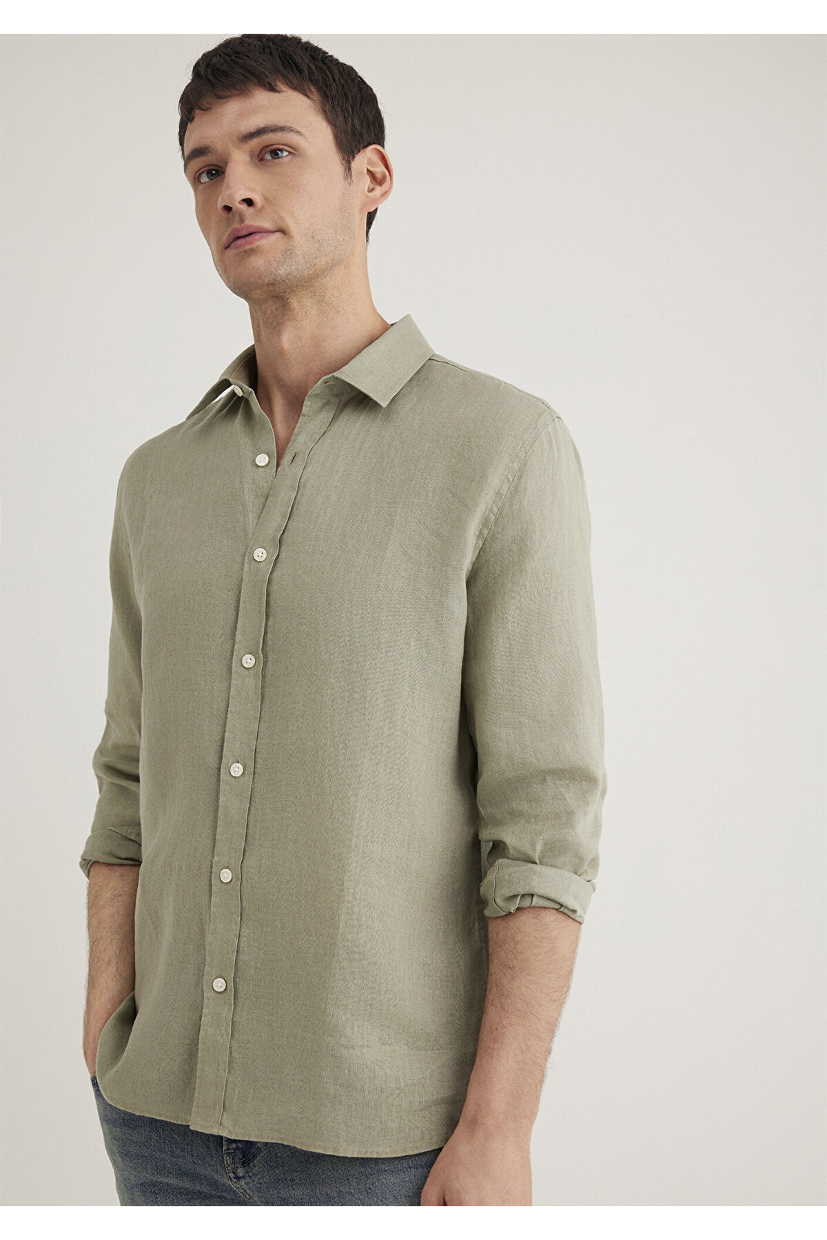 خرید اینترنتی پیراهن کتانی سبز اسلیم فیت / برش باریک 0211466-71481 برند ماوی Mavi اورجینال از Mavi نمایندگی ترکیه