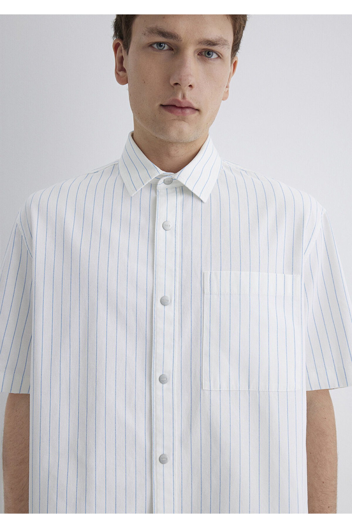 پیراهن سفید راه راه آبی از مجموعه مردانه Mavi. آستین کوتاه سایز بزرگ / پهن. ابعاد مدل: قد: 188 سانتی متر / دور کمر: 80 سانتی متر / سینه: 98 سانتی متر / باسن: 93 سانتی متر. جنسیت: مرد. کمر: کمر معمولی. مناسب: سایز بزرگ / برش عریض. نوع پارچه: بافتنی. آستین: استاندارد. محل تولید: ترکیه.
