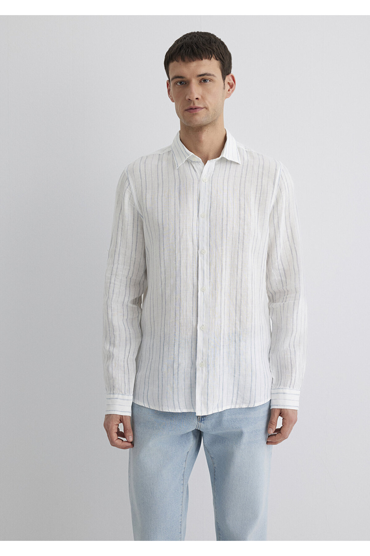 خرید اینترنتی پیراهن راه راه کتانی با تناسب معمولی / برش معمولی 0211525-89288 برند ماوی Mavi اورجینال از Mavi نمایندگی ترکیه