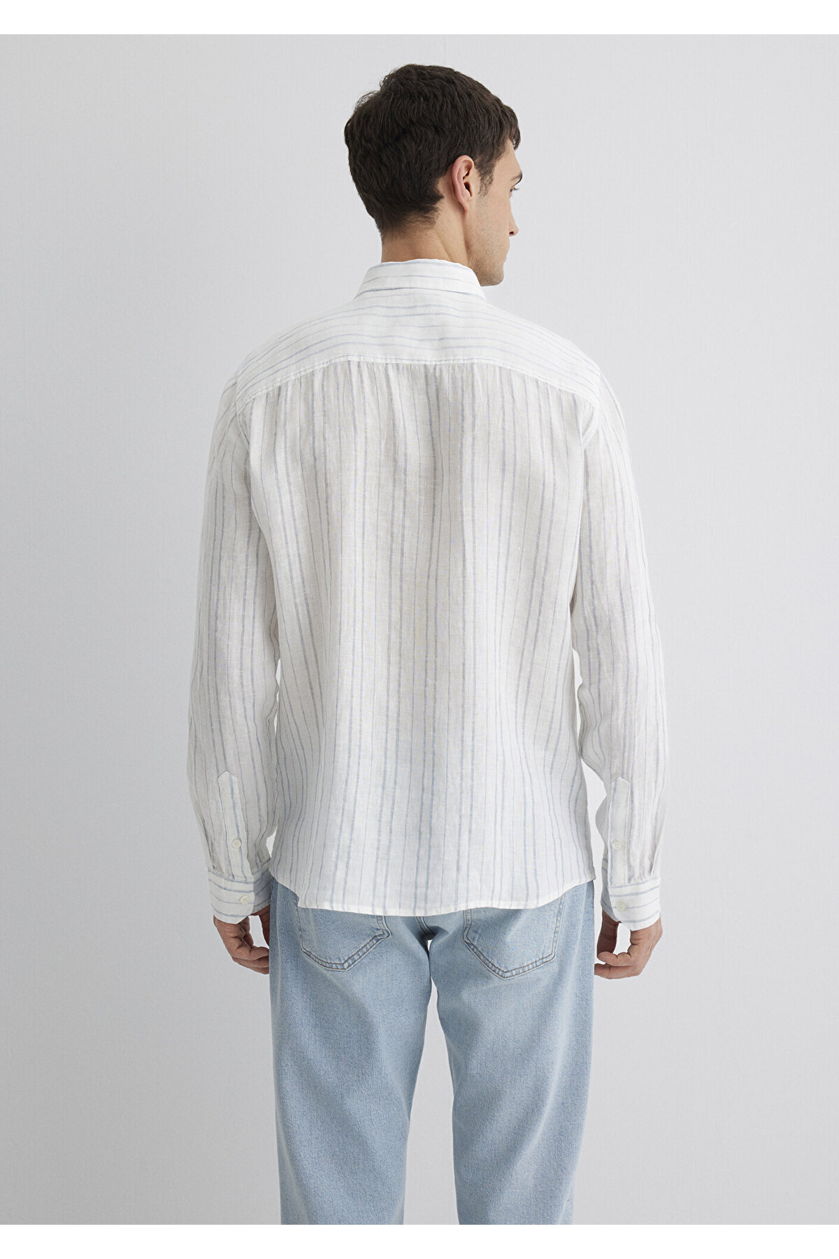پیراهن ترکیبی کتانی آبی راه راه از مجموعه مردانه Mavi.