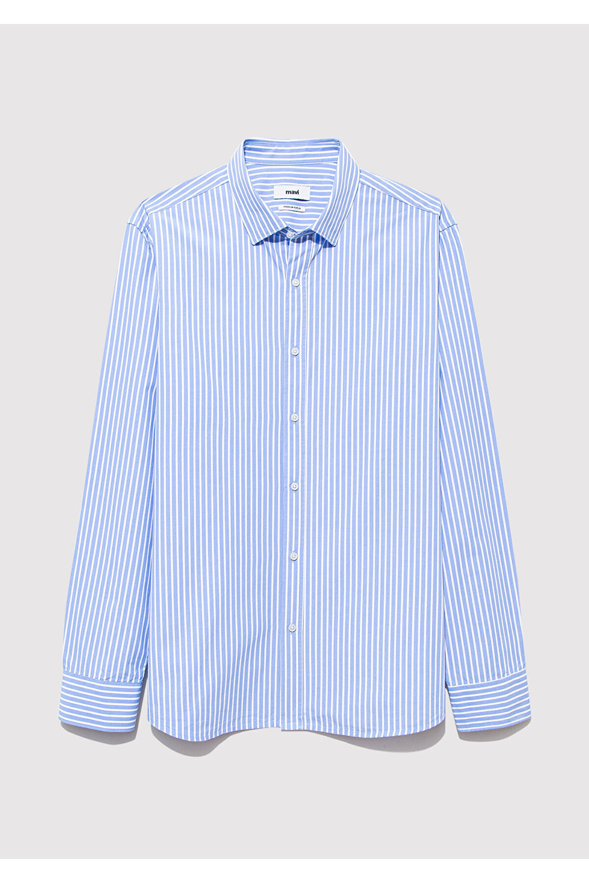 خرید اینترنتی پیراهن آبی راه راه آسان آهنی باریک / برش باریک 0211572-83767 برند ماوی Mavi اورجینال از Mavi نمایندگی ترکیه