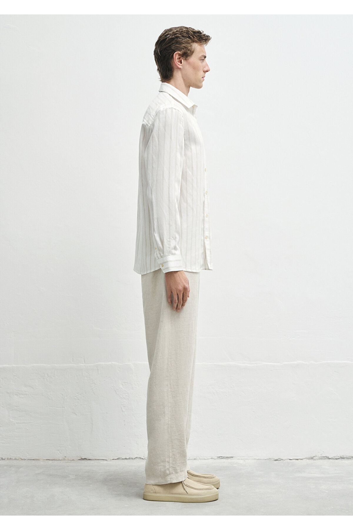 پیراهن Ecru Tencel™ لیوسل راه راه بژ از مجموعه Maviterranean Mavi.