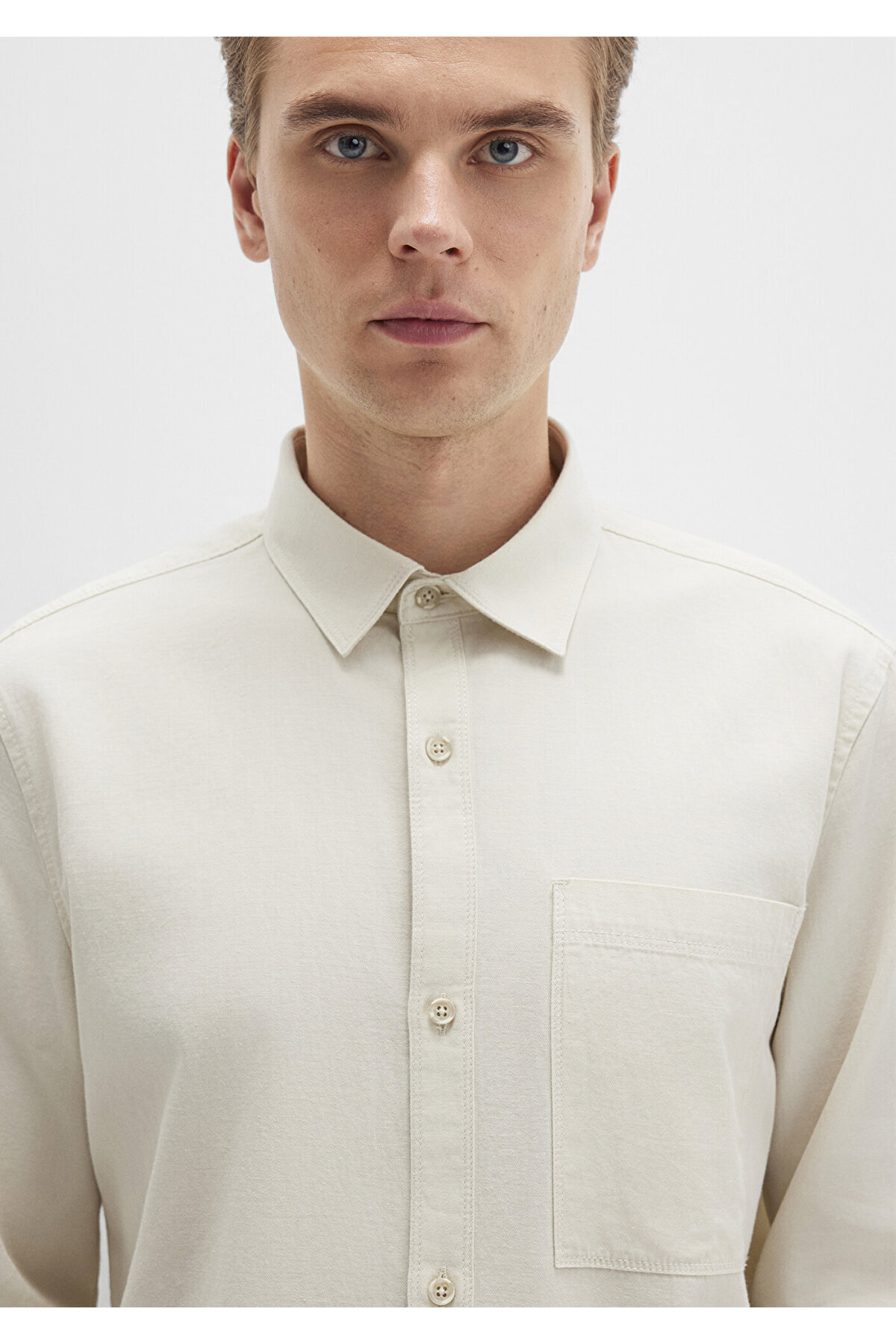 خرید اینترنتی پیراهن بژ با تناسب معمولی / برش معمولی 0211658-70134 برند ماوی Mavi اورجینال از Mavi نمایندگی ترکیه