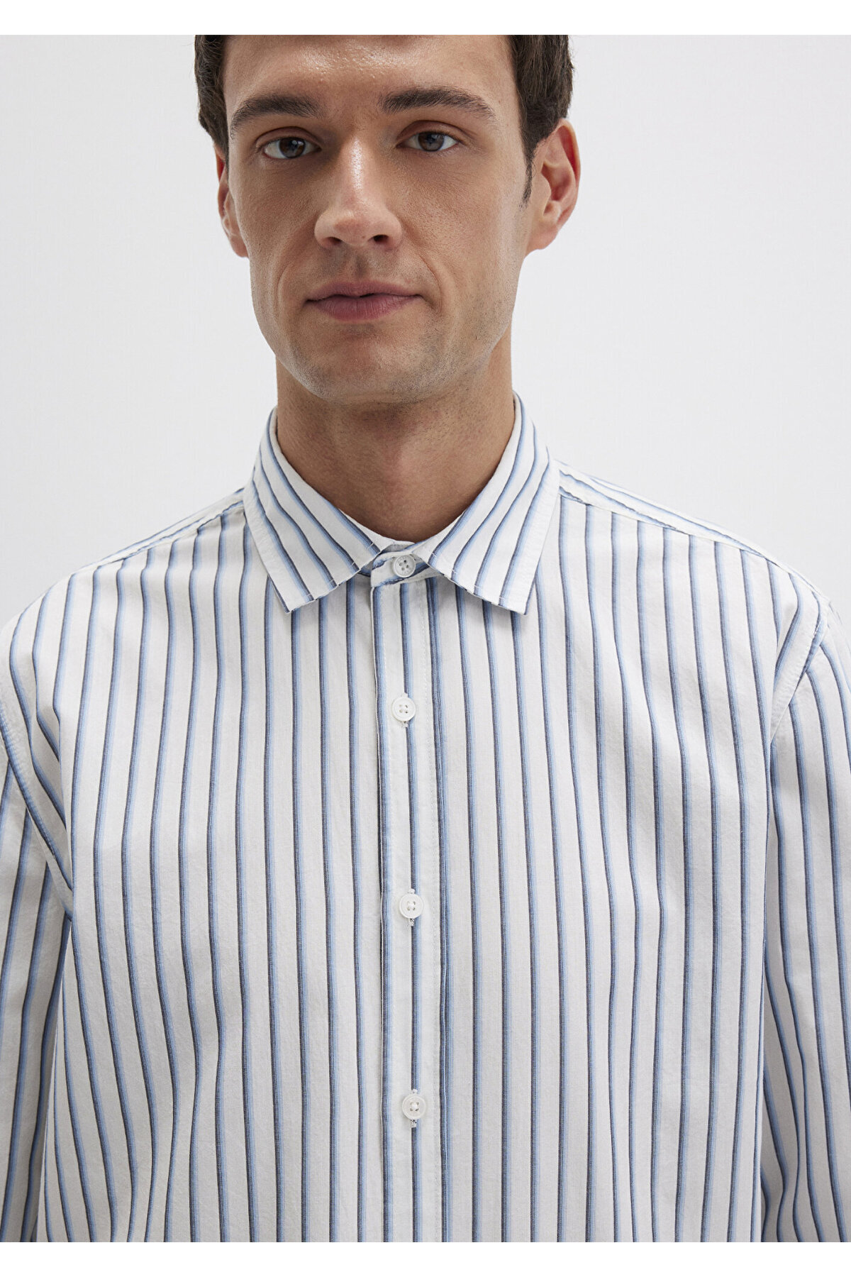 پیراهن سفید راه راه آبی از مجموعه مردانه Mavi.