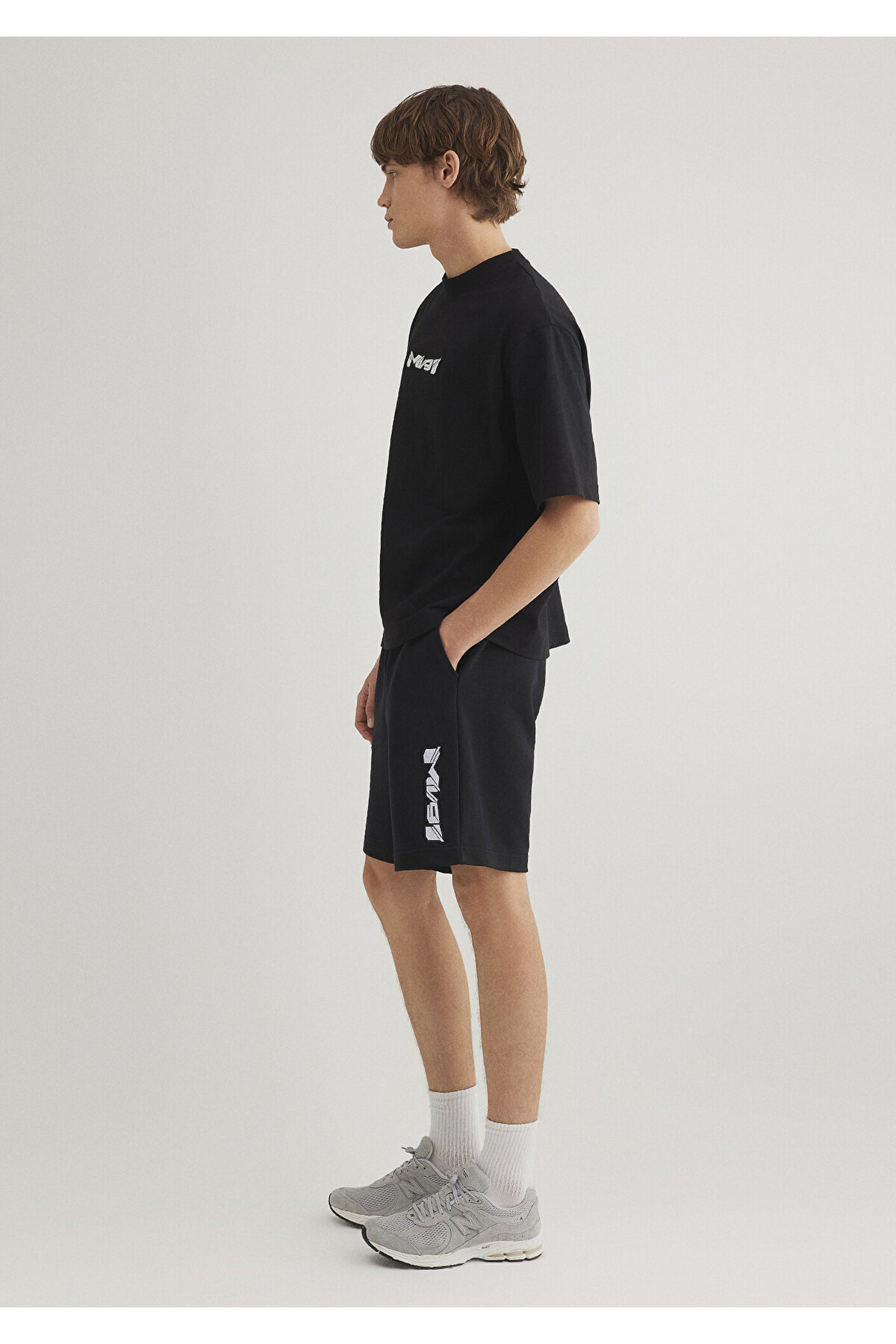 شلوارک مشکی چاپ شده با لوگوی گلدوزی شده MV91 از مجموعه مردانه Mavi.