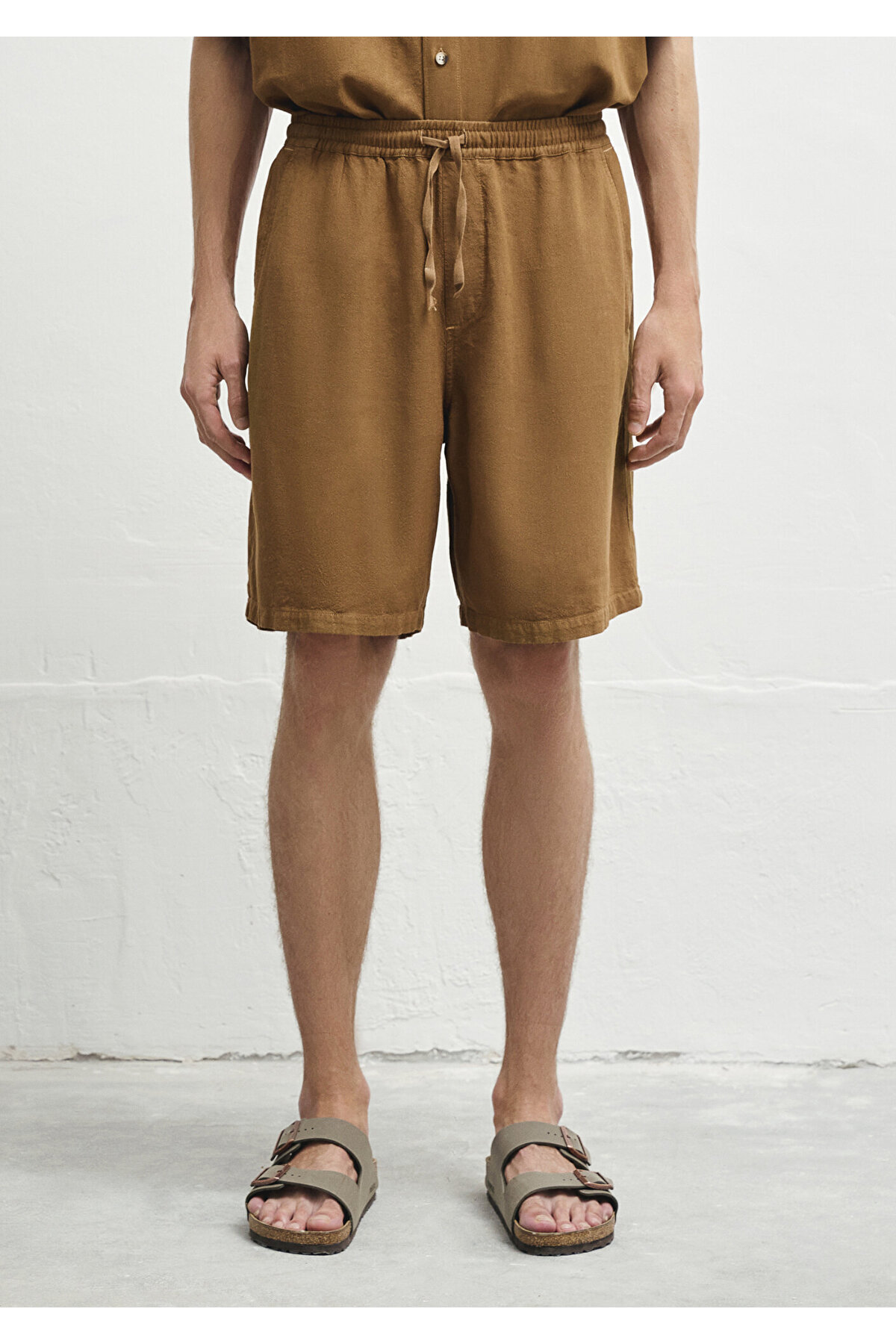 خرید اینترنتی شلوارک قهوه ای ترکیبی کتان 0410299-82337 برند ماوی Mavi اورجینال از Mavi نمایندگی ترکیه
