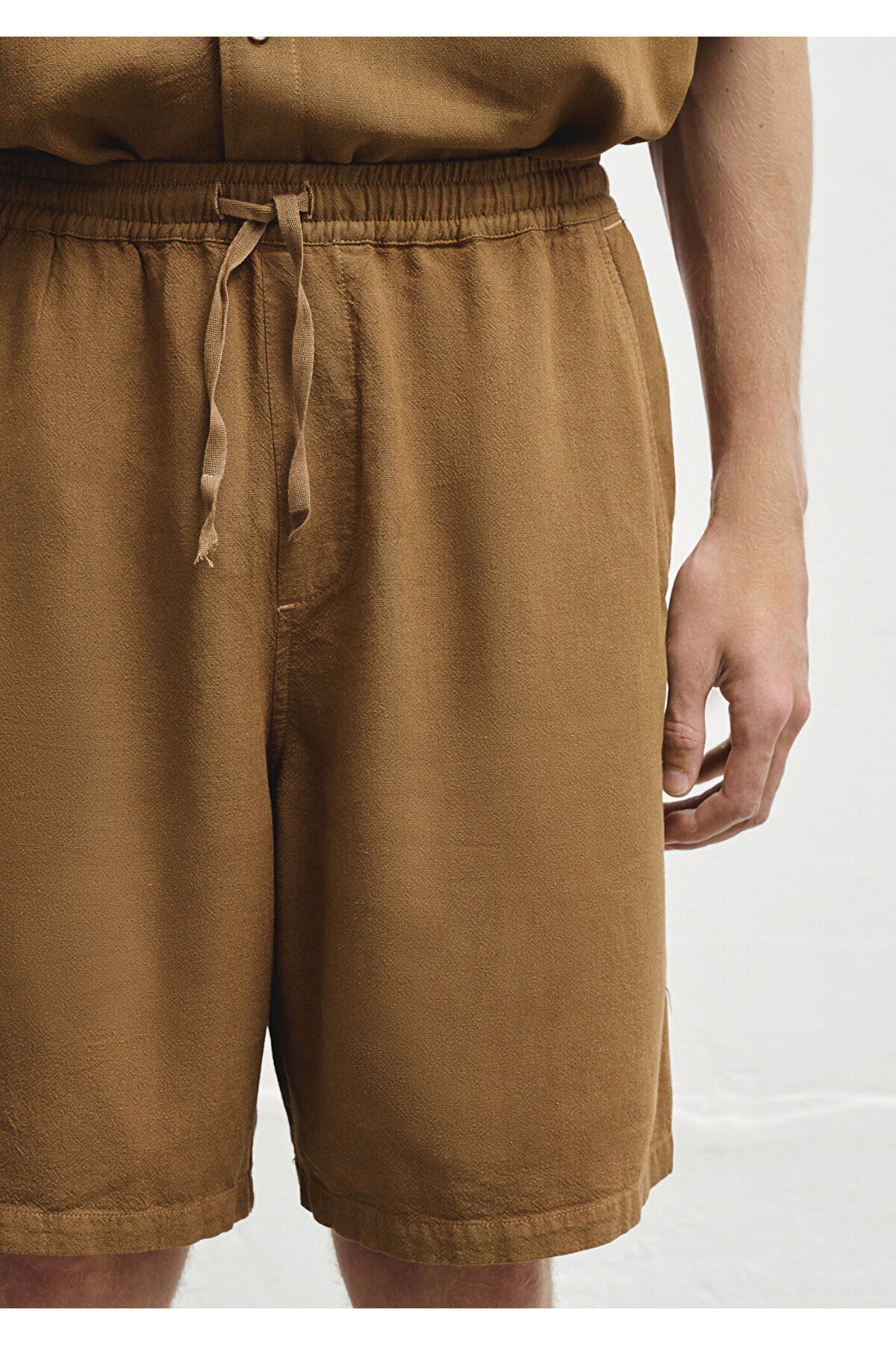 شلوارک قهوه ای کتانی-مخلوط از مجموعه Mavi’s Maviterranean.
