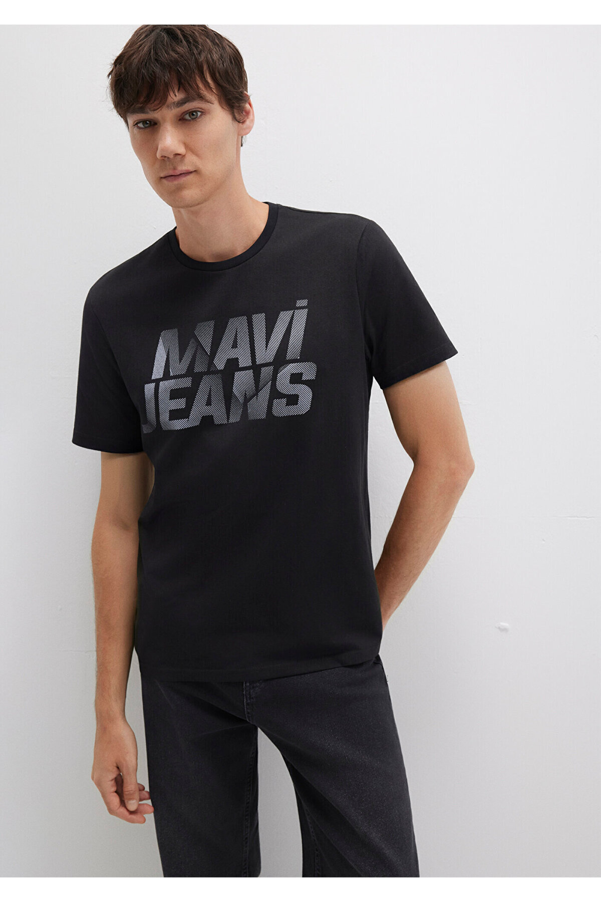 تی شرت مشکی با چاپ لوگو آبی از مجموعه مردانه Mavi.