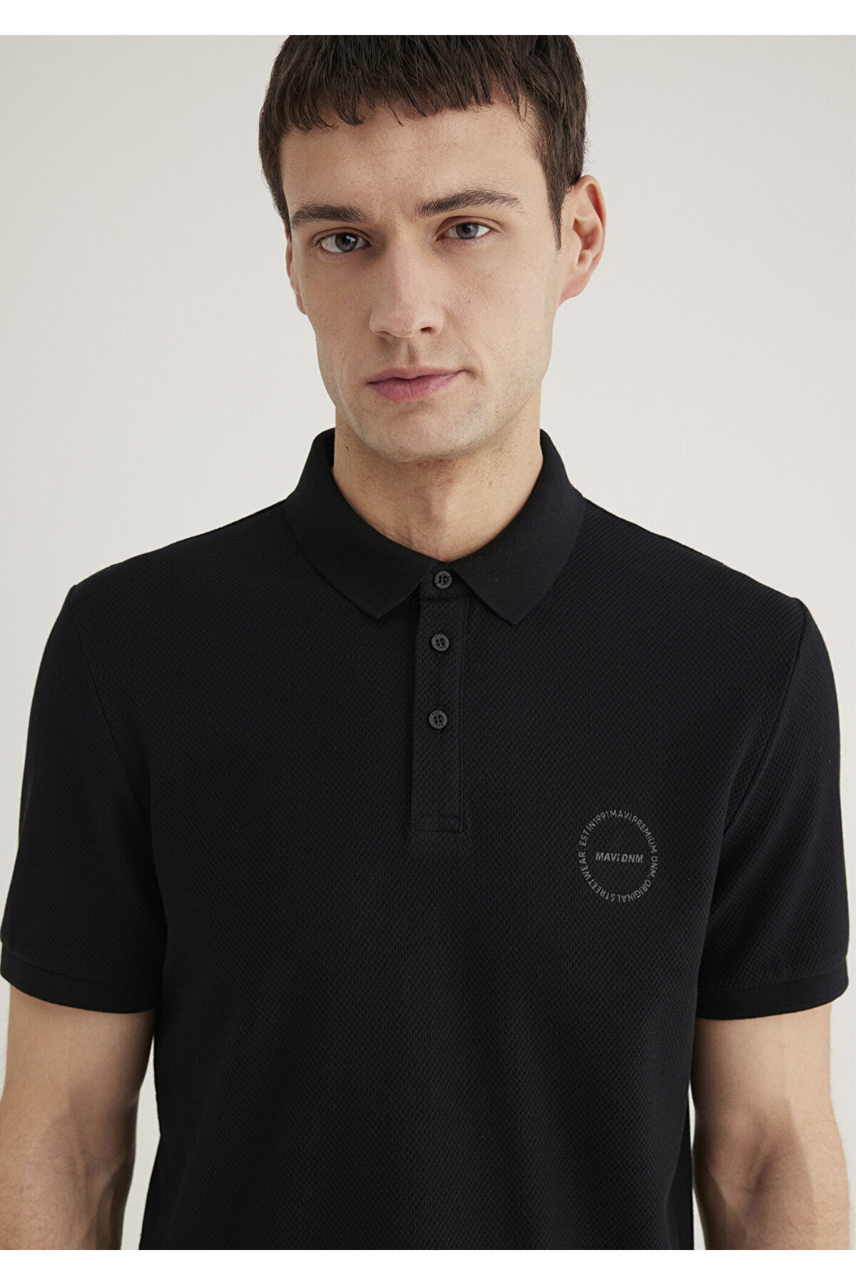 خرید اینترنتی پیراهن یقه دار مشکی بافت باریک / برش باریک 0610305-900 برند ماوی Mavi اورجینال از Mavi نمایندگی ترکیه