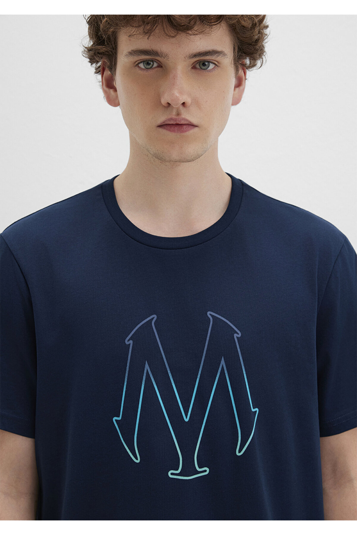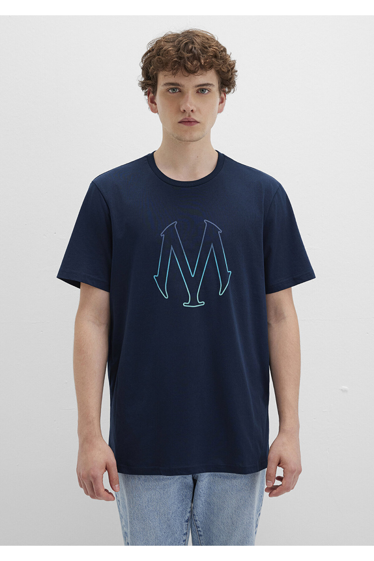 خرید اینترنتی تی شرت آبی سرمه ای چاپ شده با آرم معمولی / برش معمولی 0610635-70490 برند ماوی Mavi اورجینال از Mavi نمایندگی ترکیه