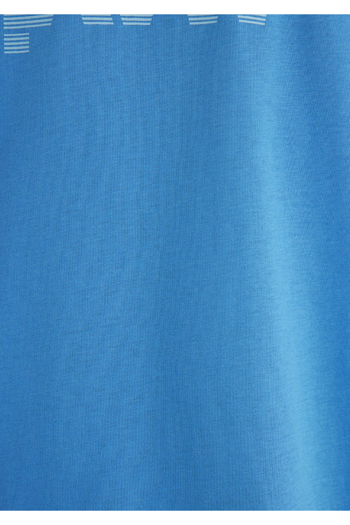 این تی شرت با لوگو آبی از 100% پنبه و پارچه متوسط ساخته شده است.