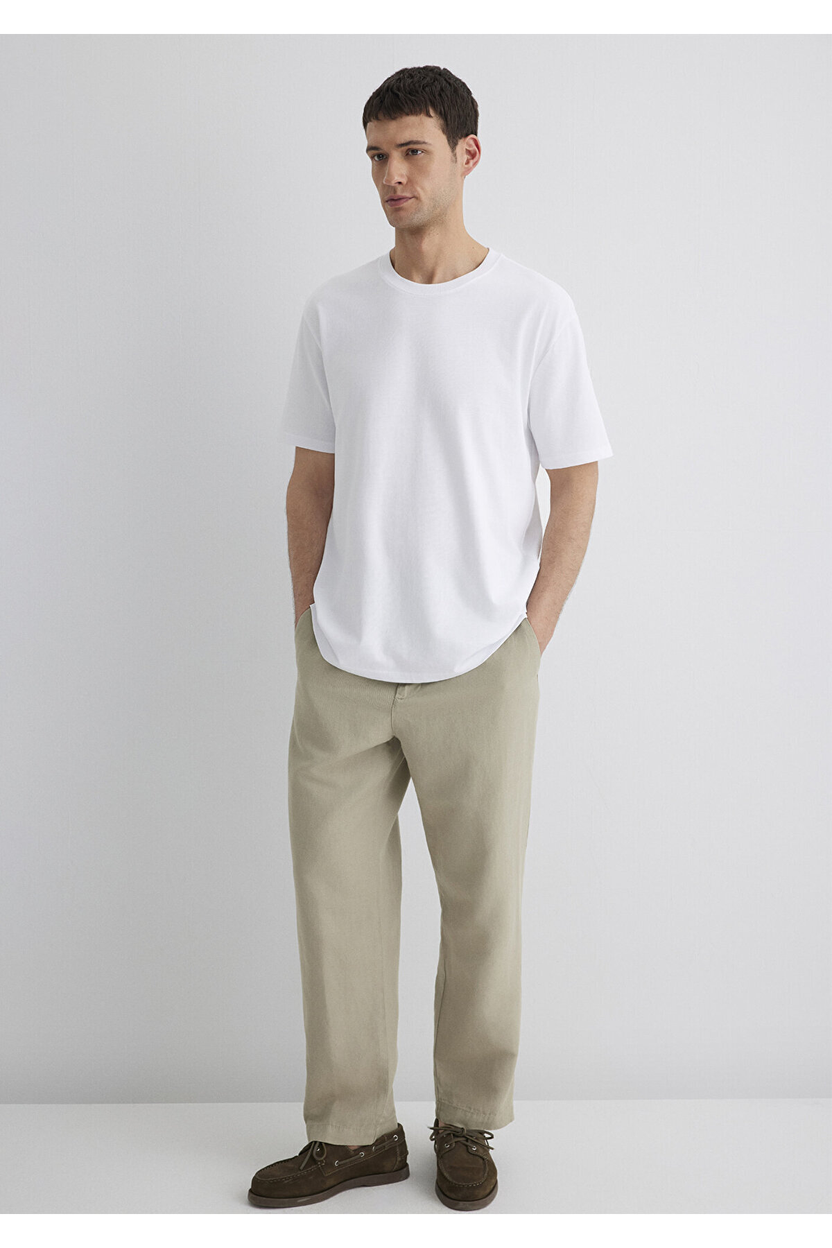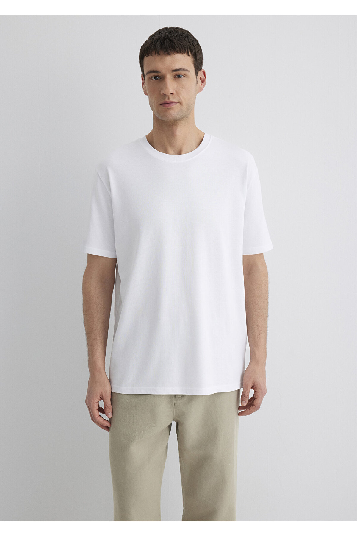 خرید اینترنتی تی شرت یقه سفید پایه گشاد / برش راحت گشاد 0611596-620 برند ماوی Mavi اورجینال از Mavi نمایندگی ترکیه