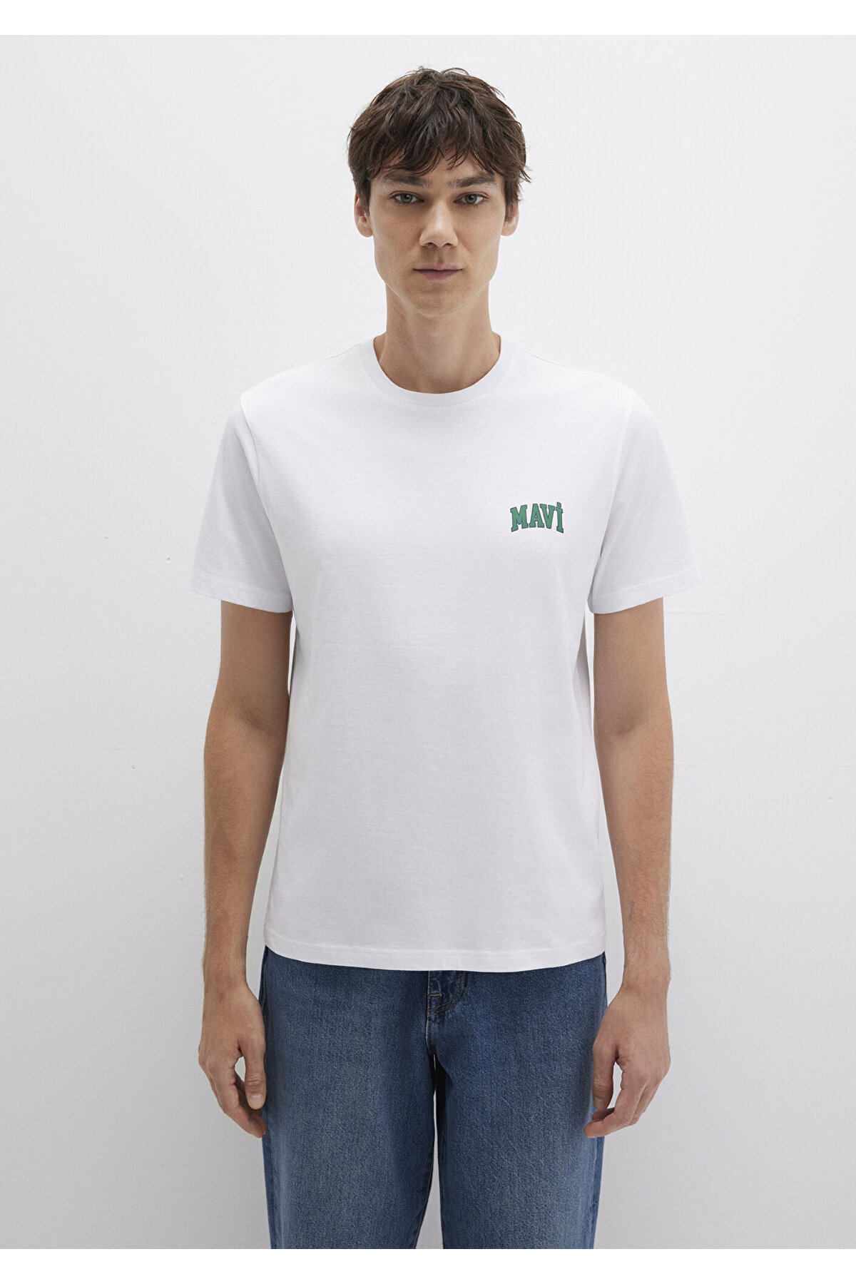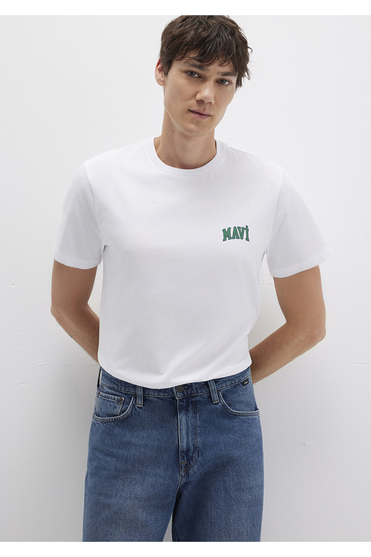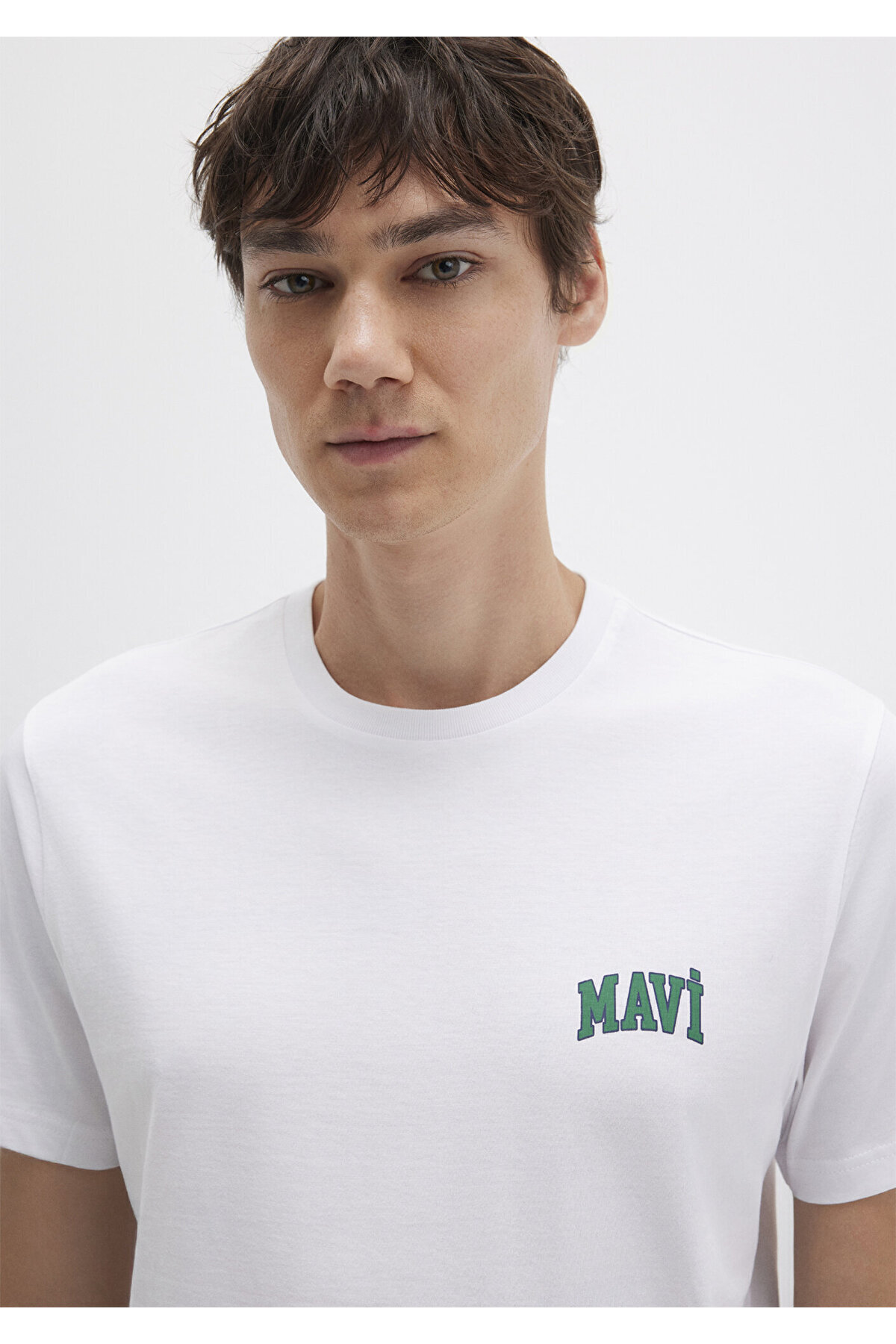 خرید اینترنتی تی شرت سفید چاپ شده با لوگو با تناسب معمولی / برش معمولی 0611714-620 برند ماوی Mavi اورجینال از MARKA MARKA SHOP نمایندگی ترکیه