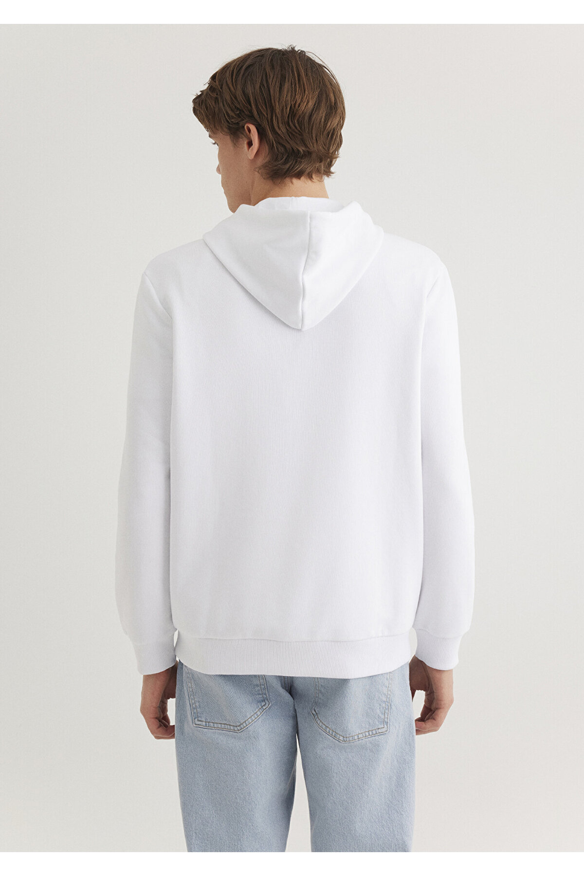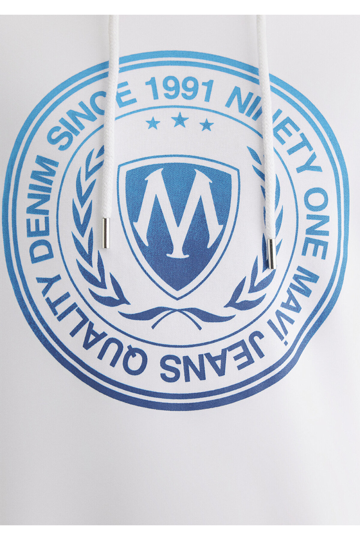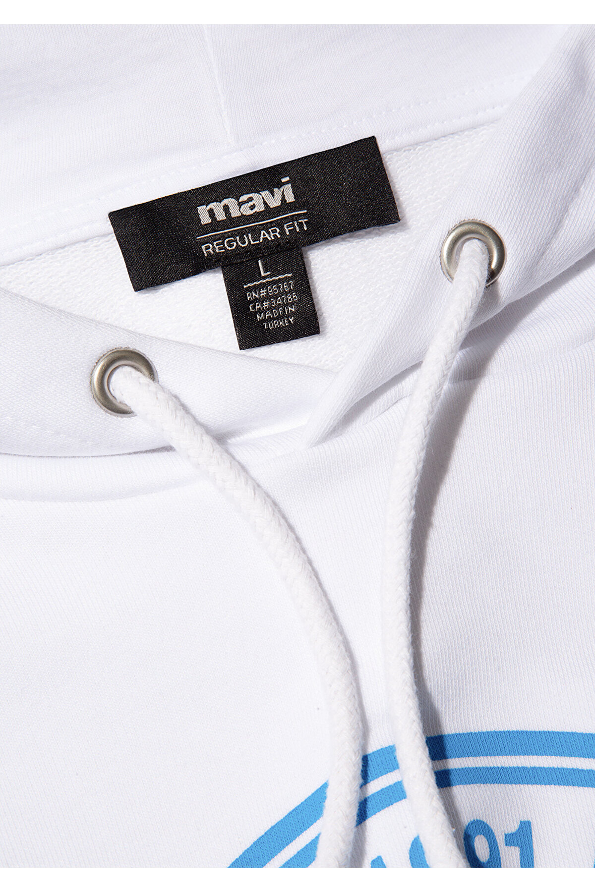یک سویشرت کلاهدار سفید با چاپ لوگوی مهر از مجموعه مردانه Mavi.