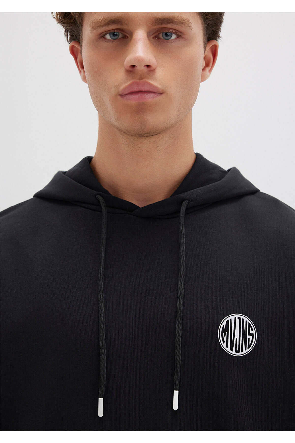 سویشرت مشکی کلاهدار چاپ شده با لوگوی MVJNS از مجموعه مردانه Mavi.