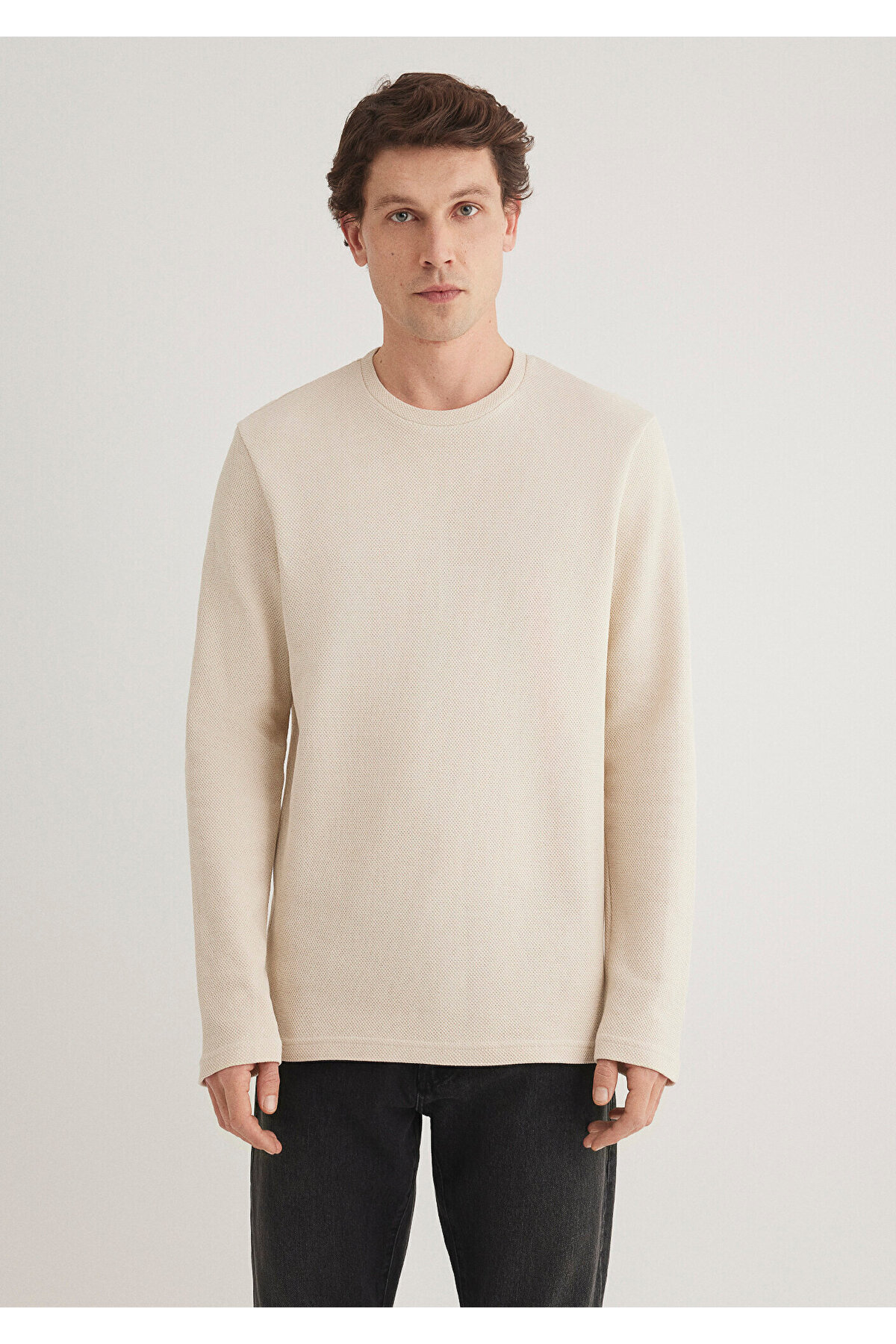 این تیشرت پایه آستین بلند بژ از 100% پنبه و پارچه متوسط ساخته شده است.